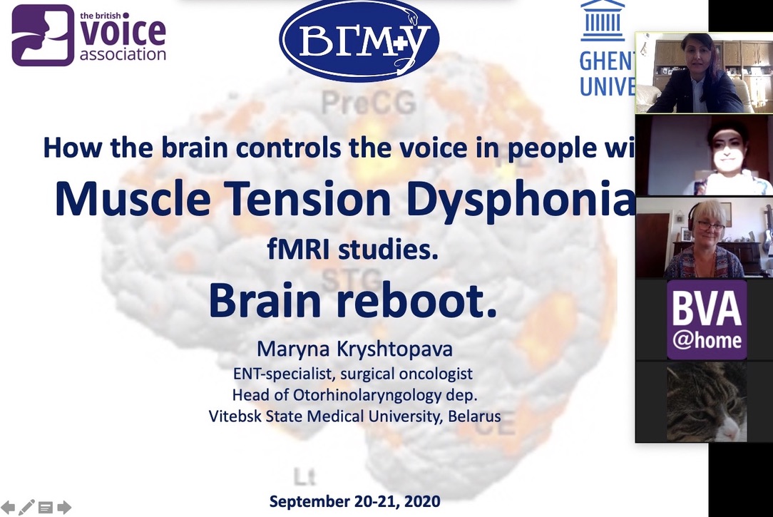 19-20 сентября состоялась онлайн конференция, организованная Британской Ассоциацией Фониатров (The Voice - Top Down), посвящённая мультидисциплинарному подходу в диагностике, лечении и профилактики заболеваний голоса. Криштопова Марина Александровна приняла участие в конференции в качестве приглашенного лектора. 45ти минутная лекция под названием "Дисфония мышечного напряжения: нейрофизиологические аспекты диагностики, лечения и профилактики» была высоко оценена организаторами и участниками конференции.