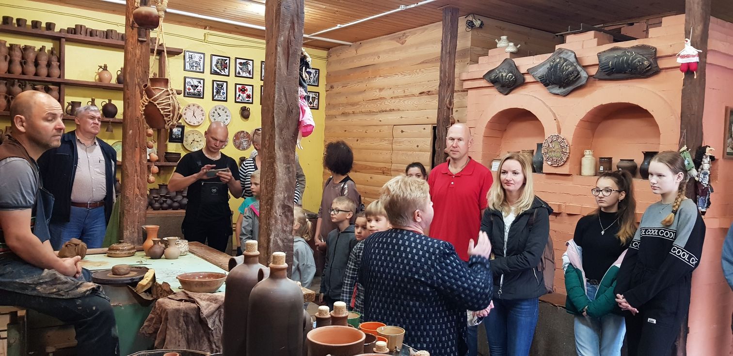 В 10.30 мы посетили музейный комплекс старинных народных ремёсел и технологий "Дудутки", где на протяжении двух с половиной часов побывали во всех его уголках: прошлись по центрам народного мастерства (гончарной мастерской, старинной кузнице, хлебопекарне, музее старинных машин, конюшне и др.), где каждый из нас имел возможность оценить и попробовать себя в том или ином ремесле. Помимо интересных ремёсел нам удалось попробовать и вкусную собственную, исконно белорусскую, продукцию, которая производиться только в "Дудутках".