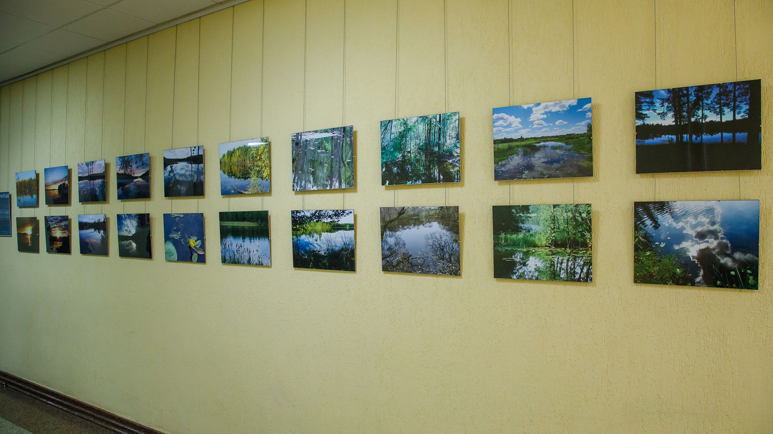На выставке Ольга Петровна поделилась своими впечатлениями из отпусков, которые проводила рядом с озерами и реками. На фотографиях из водной глади рождаются кувшинки, в ней отражается лес, она становится полотном или сценой представления, разыгранного природой. Вода приоткрывает свои тайны, а объектив делает их более явными для зрителя.
