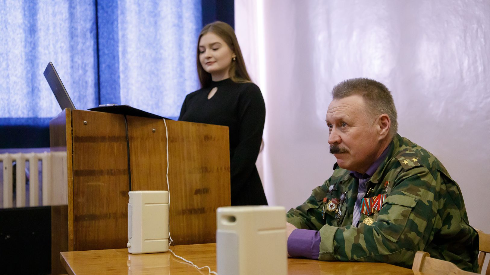 В рамках данного мероприятия перед студентами, обучающимися по программам подготовки офицеров запаса, преподавателями кафедры выступил воин – интернационалист, военный врач, кавалер двух орденов «Красной звезды» подполковник запаса Тришин Сергей Семенович. Сергей Семенович вспомнил трагические дни войны в Афганистане, на которой провел без малого два года. В своем рассказе ветеран остановился на сложностях, с которыми сталкивались военные врачи при оказании медицинской помощи в боевых условиях, как боролись с вспышками инфекционных заболеваний, которые очень часто возникали из-за некачественной местной воды, что требовало усиленного контроля за санитарно – эпидемиологическим состоянием в местах дислокации воинских частей и подразделений. Вспомнил Сергей Семенович своих боевых друзей, которые не вернулись с этой войны и полегли в горах Афганистана.