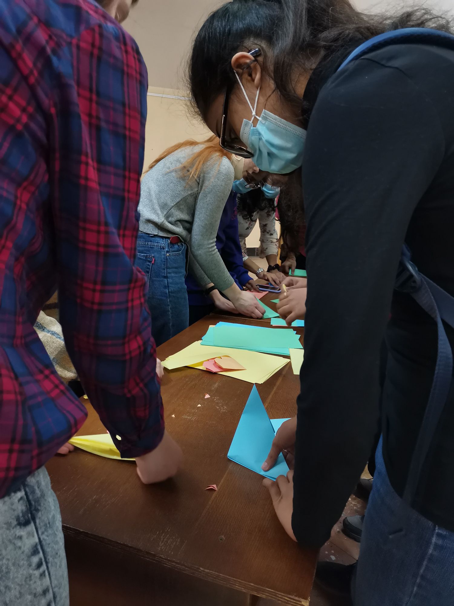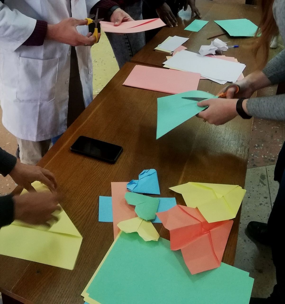Отечественные студенты в то же время провели мастер-класс в технике оригами «Весенние цветы тебе я подарю». На улице уже пахнет весной, сердце оживает и наполняется эмоциями, и вот-вот придёт чудесный, теплый весенний праздник — Международный женский день. Поэтому не случайным кажется выбор бумажных фигур: журавлик, бабочка, сердце и тюльпан.