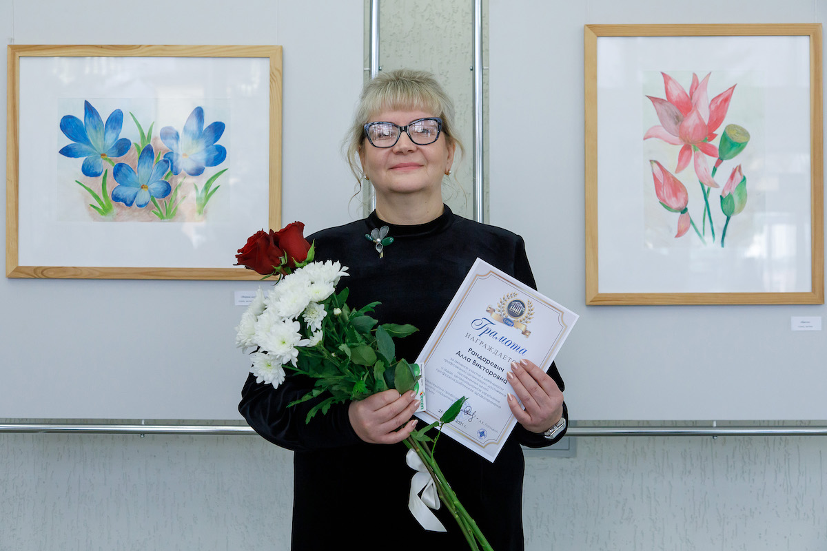 2 апреля в фойе лабораторно-теоретического корпуса была открыта выставка художественных работ «Цветочная фантазия» Аллы Викторовны Рандаревич, воспитателя студенческого общежития №4. На творчество Аллу Викторовну вдохновляет красота родного края. С самого детства она очень любит природу и яркими красками своих работ старается выразить эту давнюю любовь.