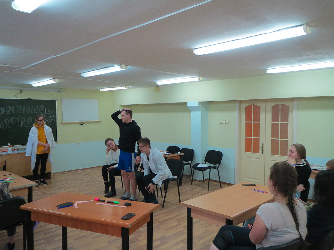 27 апреля в читальном зале общежития №4 ВГМУ прошёл творческий конкурс «Весеннее обострение» в рамках «Студенческой весны ВГМУ-2021». Почему «Весеннее обострение»? Потому что весна – поистине удивительное время, когда обостряются все чувства. Весна – это время обновления, талантов и творческих открытий. Все участники конкурса были разделены на команды при помощи разноцветных лент, которые вытягивали ребята из волшебной шляпы. Затем каждая команда за 10 минут должна была придумать себе название, эмблему и девиз. После чего всем было предложено на месте продумать креативный творческий номер и выступить с ним. Кто-то решил прочитать длинное стихотворение, кто-то – побыть актерами и провести небольшую инсценировку из жизни студентов-медиков или врачей. Кто-то побыл доктором Айболитом и излечил всех животных. Каждая команда отличалась своей харизмой и необычным подходом к выступлению.