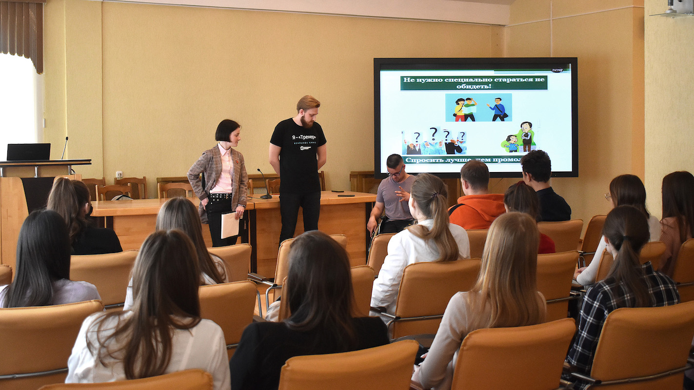29 апреля в рамках фестиваля «Студенческая весна ВГМУ-2021» проведён обучающий мастер-класс "Этикет общения и безопасное сопровождение людей с инвалидностью". Студенты ВГМУ совместно с кафедрой медицинской реабилитации и физической культуры рассказали первокурсникам о правилах общения с людьми с инвалидностью, а также на практике показали, как оказать помощь безопасно для себя и человека с дополнительными потребностями. Дополнительно слушатели узнали о существующих в университете волонтерских отрядах, чем они занимаются и как туда попасть.