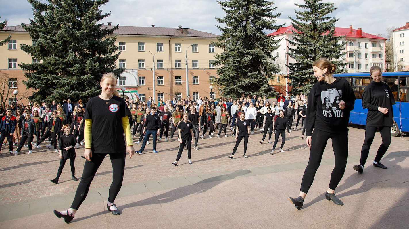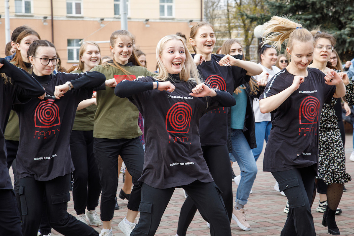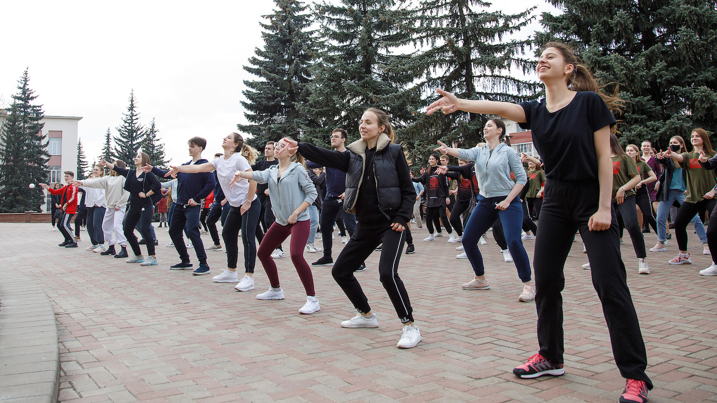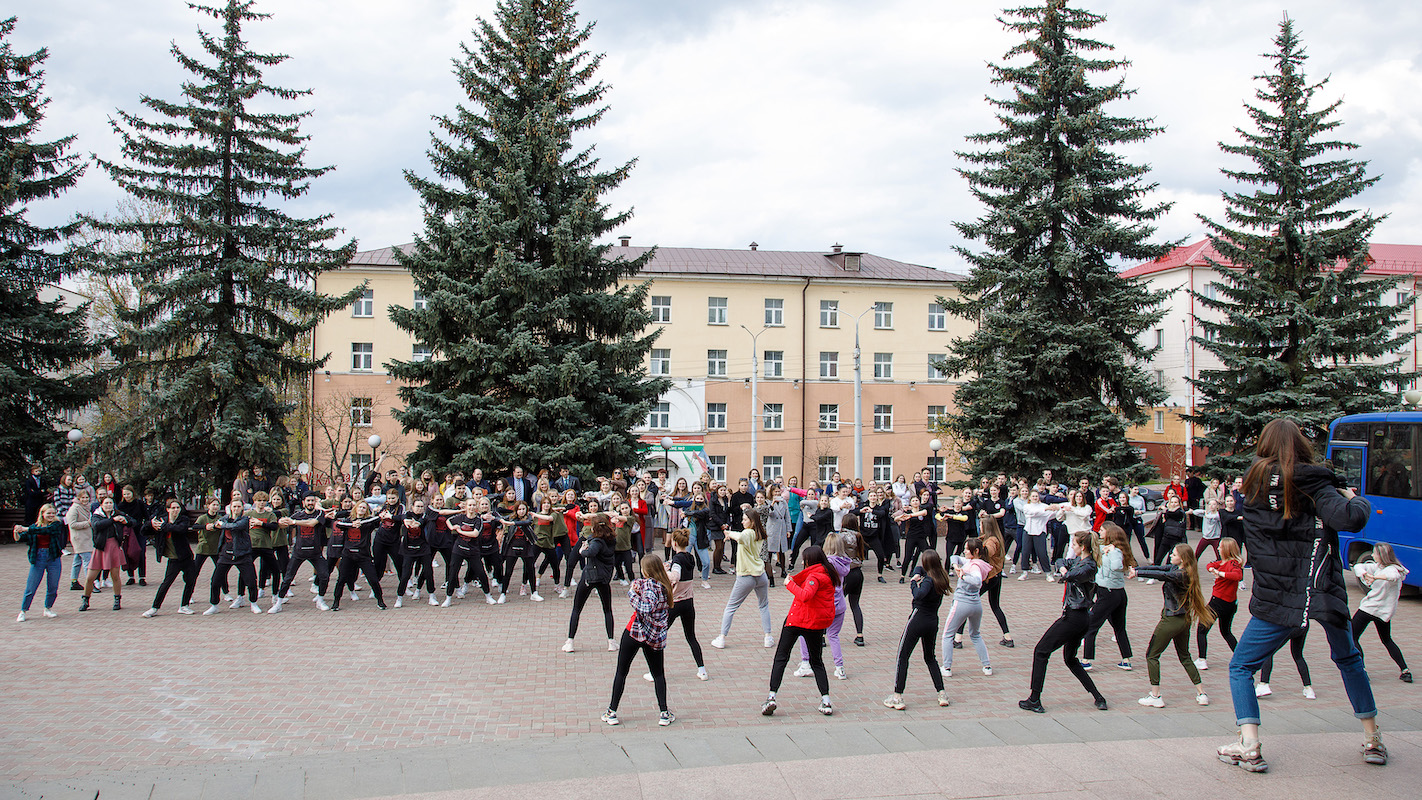 Руководители танцевальных коллективов по очереди выходили на импровизированную сцену, которой на время стала лестничная площадка перед входом в лабораторно-теоретический корпус, и показывали собравшимся несколько несложных связок из хореографических движений определённого жанра. Затем все вместе повторяли их под энергичную музыку. Таким образом участники флеш-моба на время погрузились в атмосферу современных и народных танцев. И слова, выкрикнутые хором: «Мы вместе! Мы едины!» стали отличным завершением этого весёлого мероприятия.