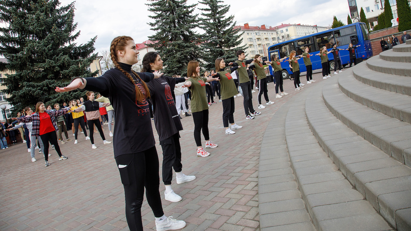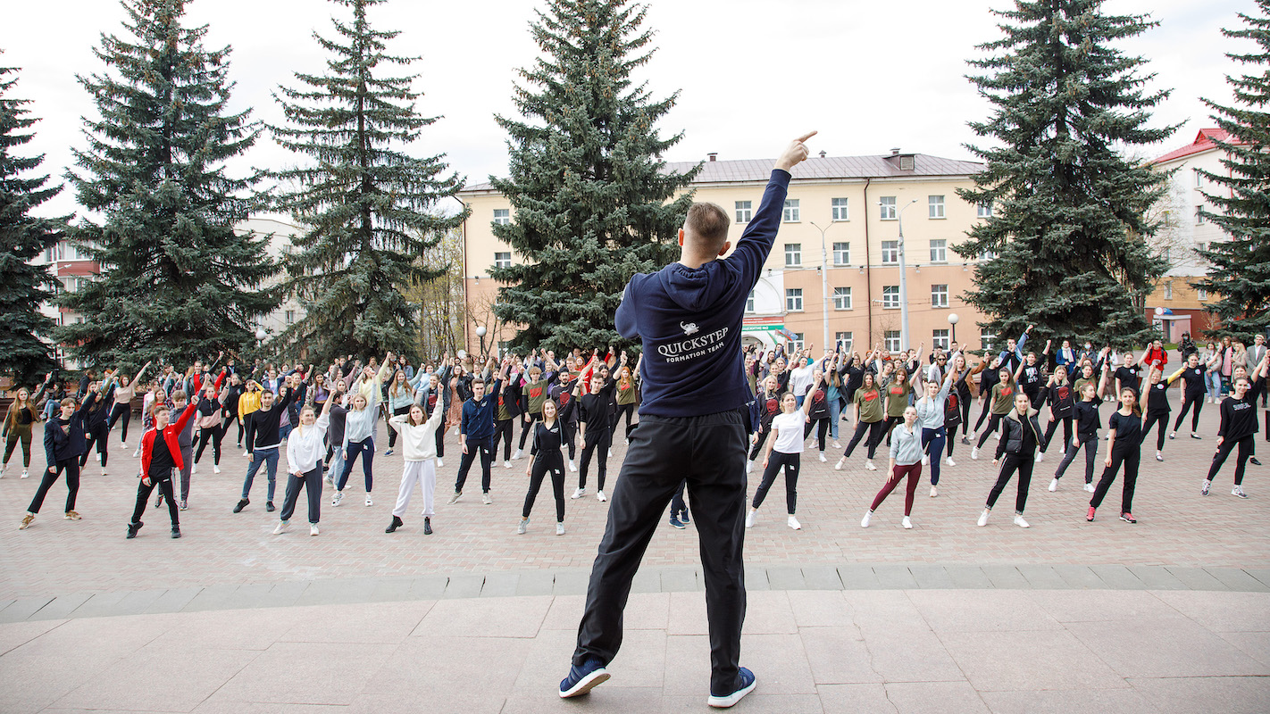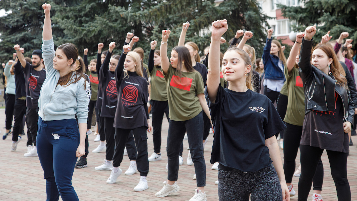 Руководители танцевальных коллективов по очереди выходили на импровизированную сцену, которой на время стала лестничная площадка перед входом в лабораторно-теоретический корпус, и показывали собравшимся несколько несложных связок из хореографических движений определённого жанра. Затем все вместе повторяли их под энергичную музыку. Таким образом участники флеш-моба на время погрузились в атмосферу современных и народных танцев. И слова, выкрикнутые хором: «Мы вместе! Мы едины!» стали отличным завершением этого весёлого мероприятия.