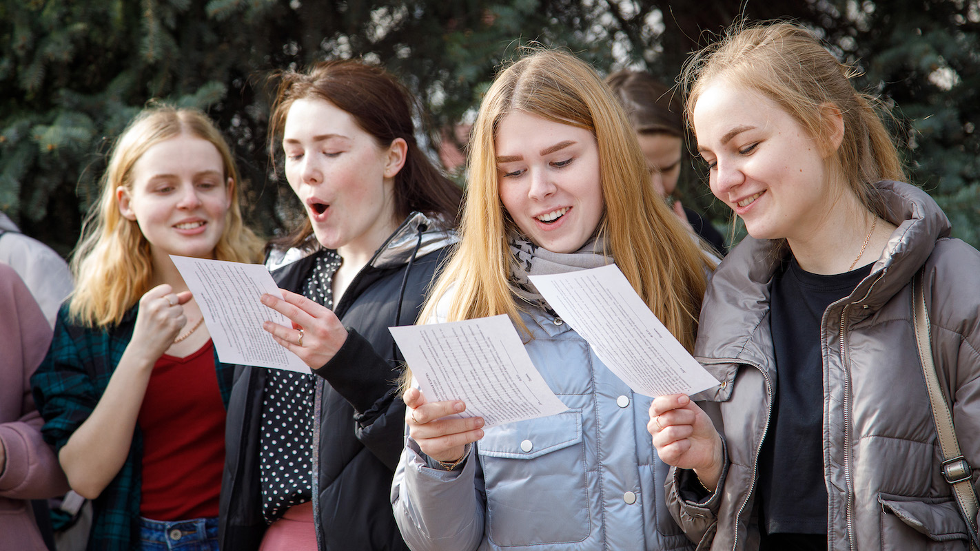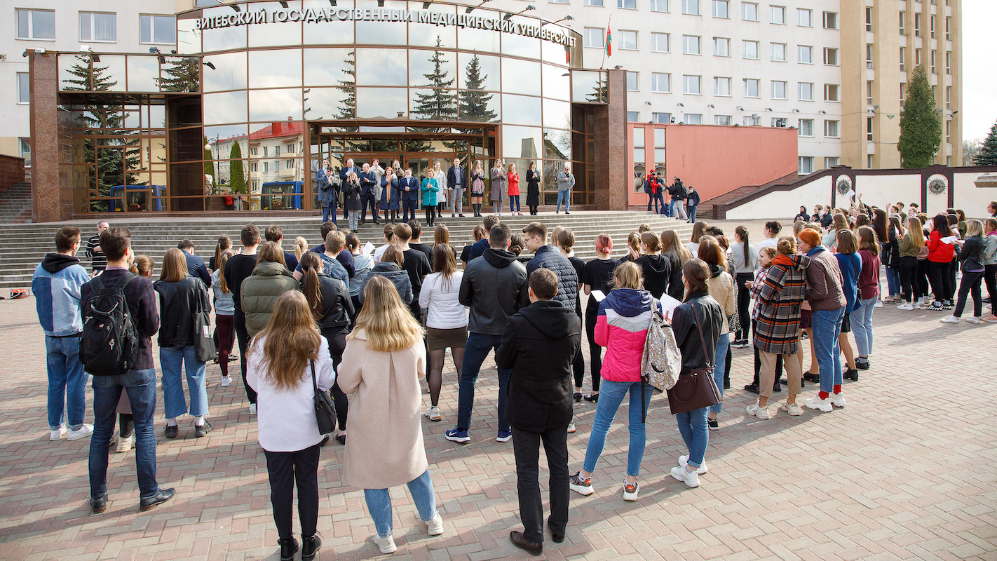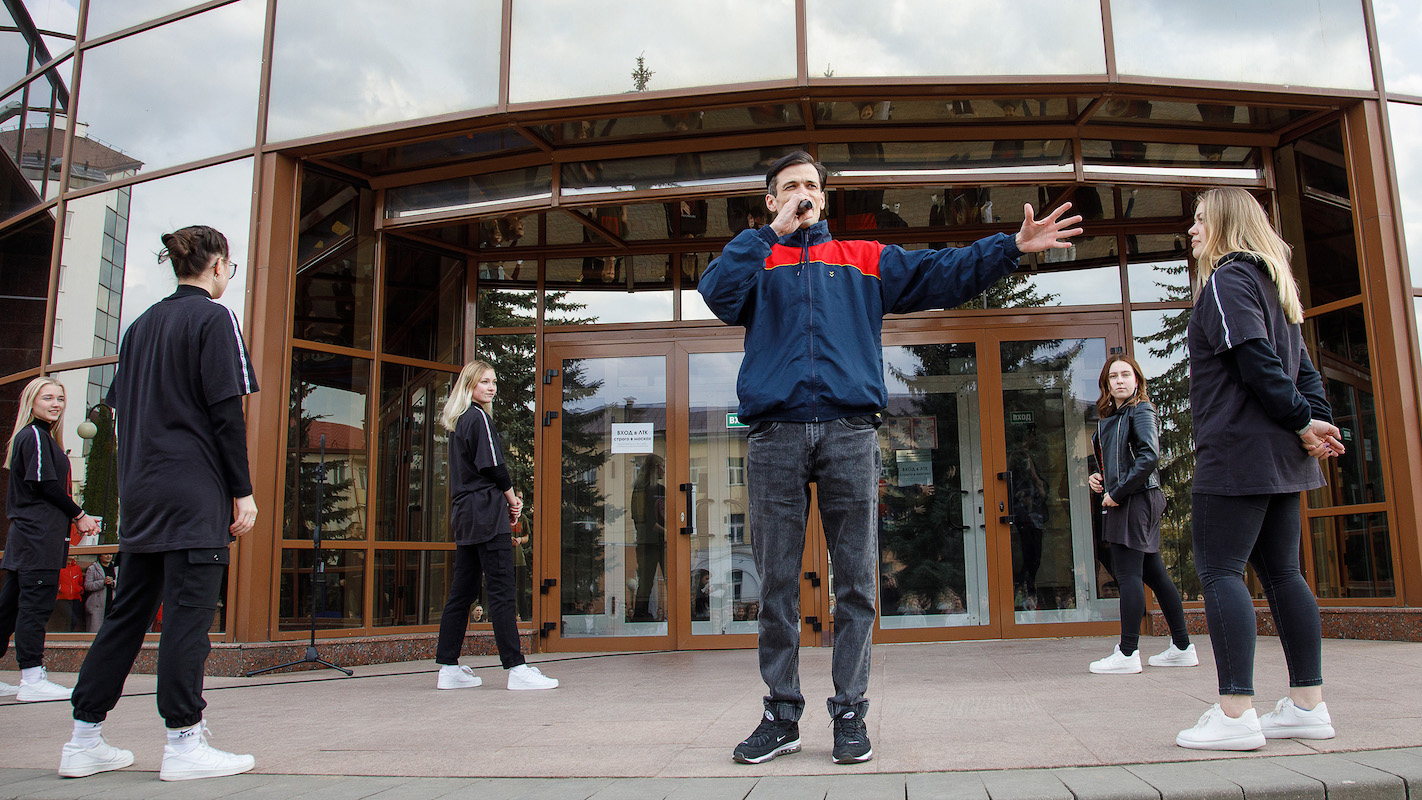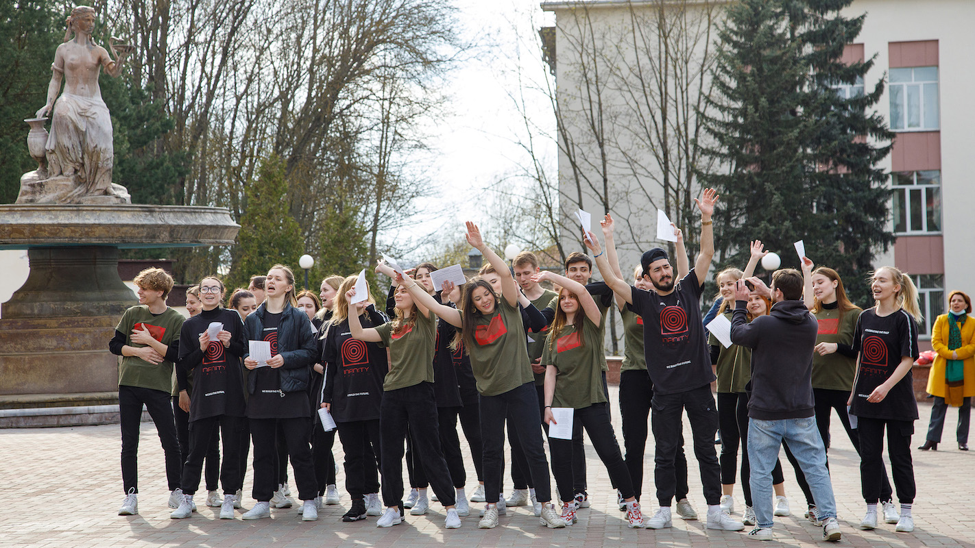 После танцевального флэш-моба собравшиеся на площади ВГМУ вместе спели гимн нашего университета.