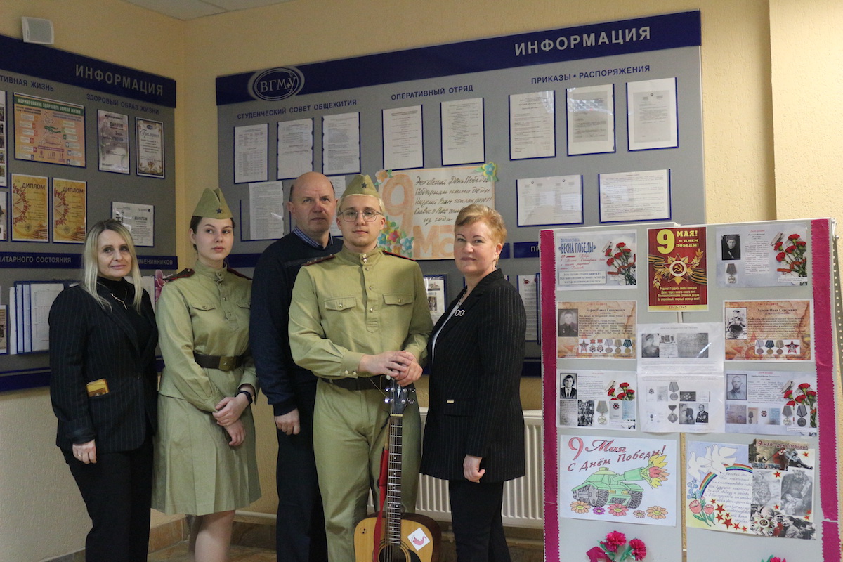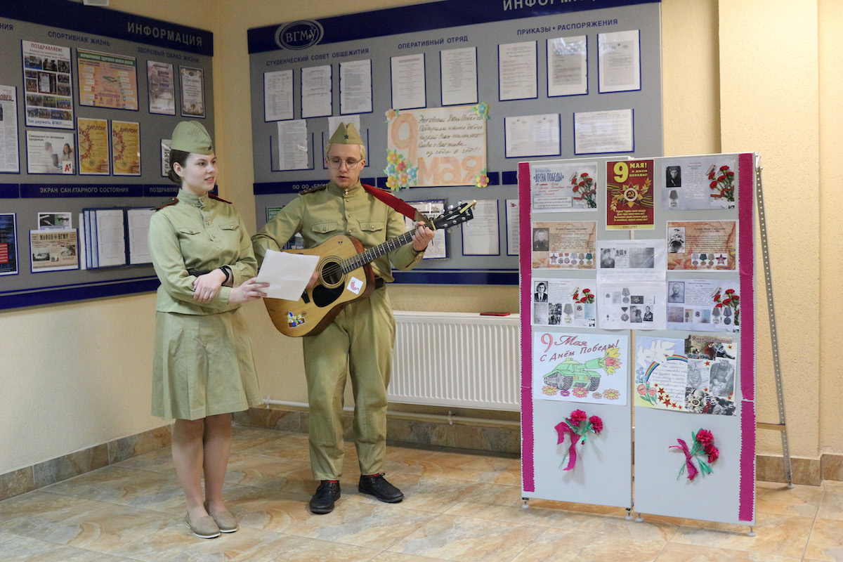 5 мая в общежитии прошло открытие стенда памяти – участникам Великой Отечественной войны. Звучали стихи Константина Симонова «Жди меня, и я вернусь…» в исполнении Анны Гацко, Артуром Медведевым душевно была исполнена песня под гитару «День Победы», на телеэкране в холле общежития шёл показ видеороликов с песнями военных лет. Праздник «со слезами на глазах» вызвал бурю эмоций и оставил глубокое впечатление в сердце каждого из нас. Вечная память Защитникам Родины!