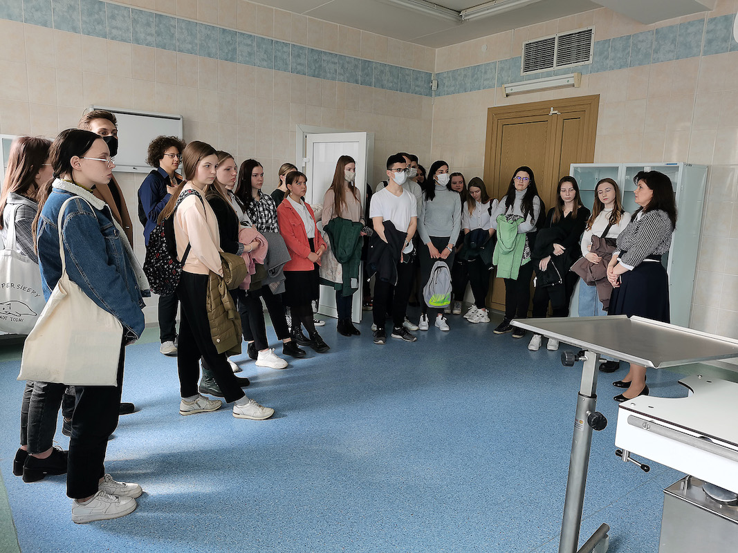 В конце апреля в рамках работы учебно-профориентационно-консультативного центра ВГМУ состоялась экскурсия для учащихся химико-биологического профиля ГУО «Гимназия №3 г. Витебска», подготовленная Советом студентов и факультетом довузовской подготовки. Гимназисты под руководством учителя химии Натальи Викторовны Байдо посетили Витебский государственный медицинский университет. Свое знакомство с университетом ребята начали с кафедры оперативной хирургии и топографической анатомии. Заведующая кафедрой Купченко Анна Михайловна познакомила гостей с материально-технической базой, учебными кабинетами, оснащением хирургических операционных. Много внимания было уделено рассказу о клинической работе. Сотрудники кафедры выполняют наиболее сложные оперативные вмешательства, проводят обходы и консультации, участвуют в клинических и патологоанатомических конференциях. И всё это на глазах студентов, что в очередной раз говорит о практикоориентированности обучения.
