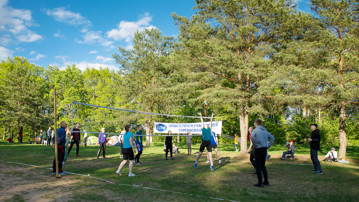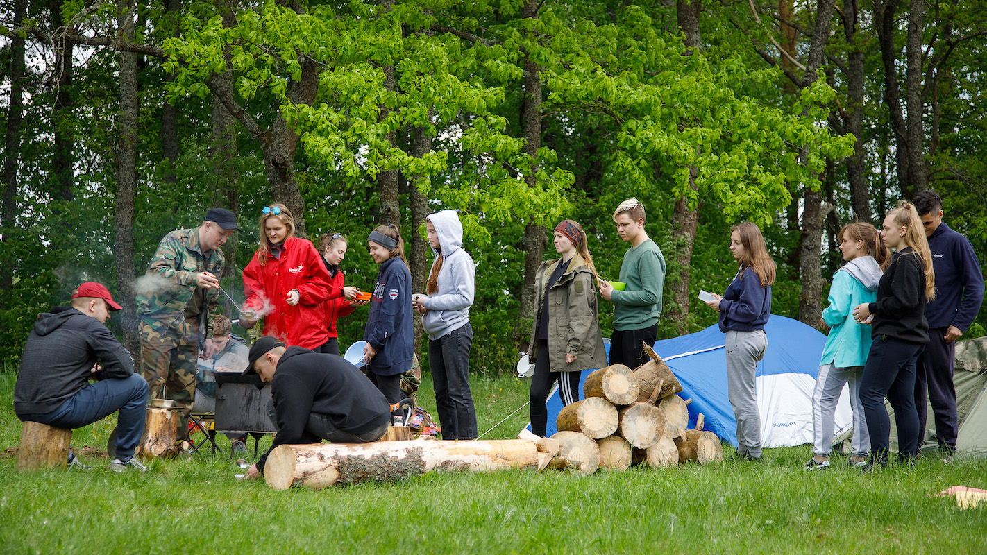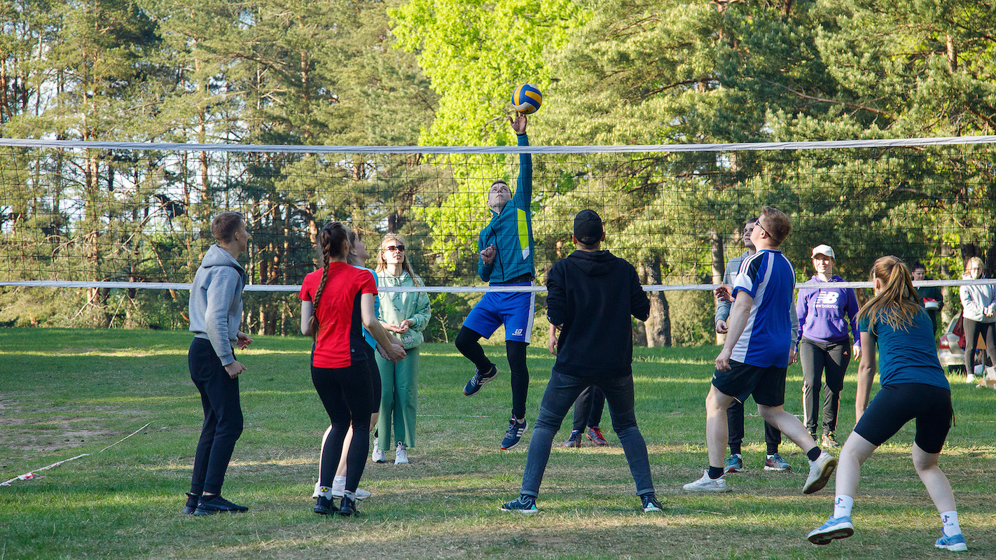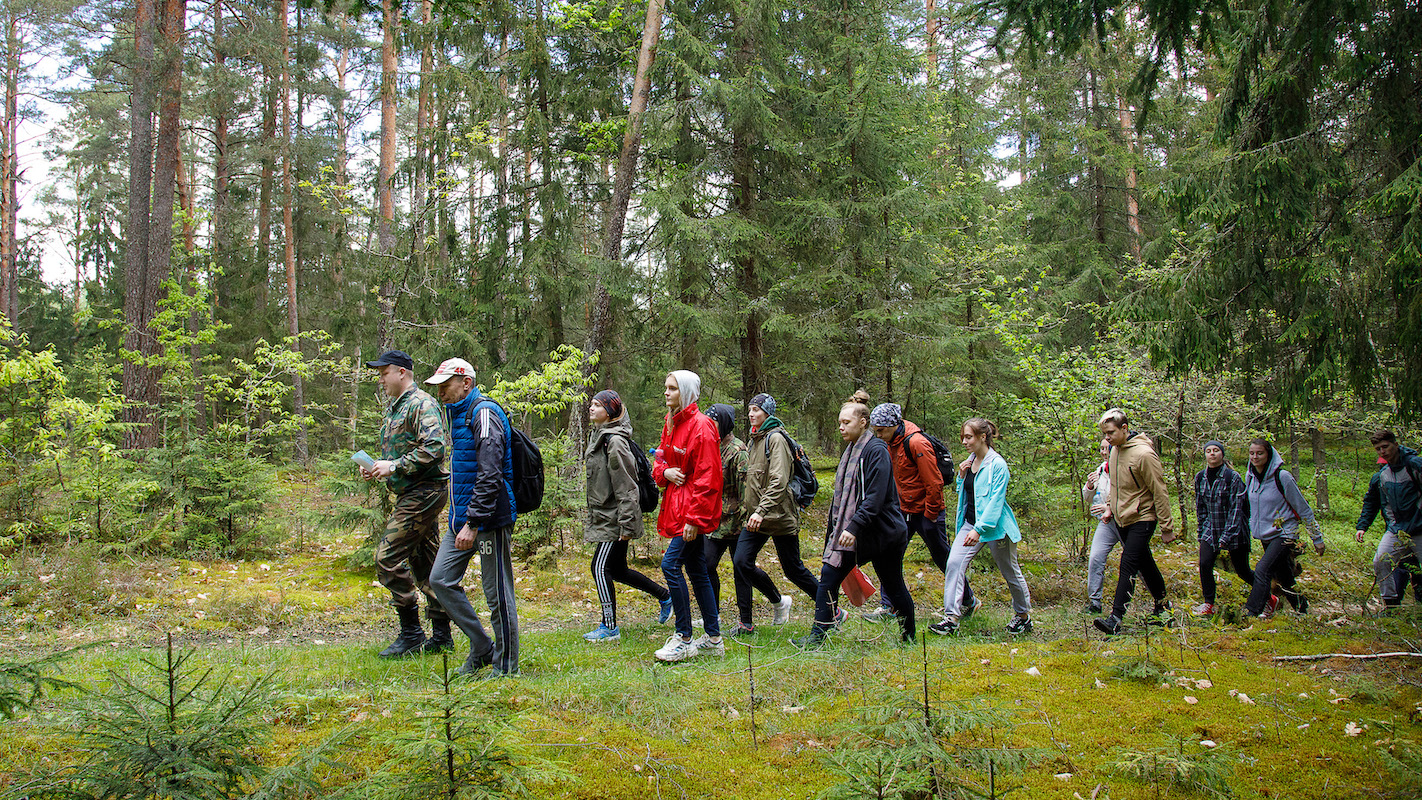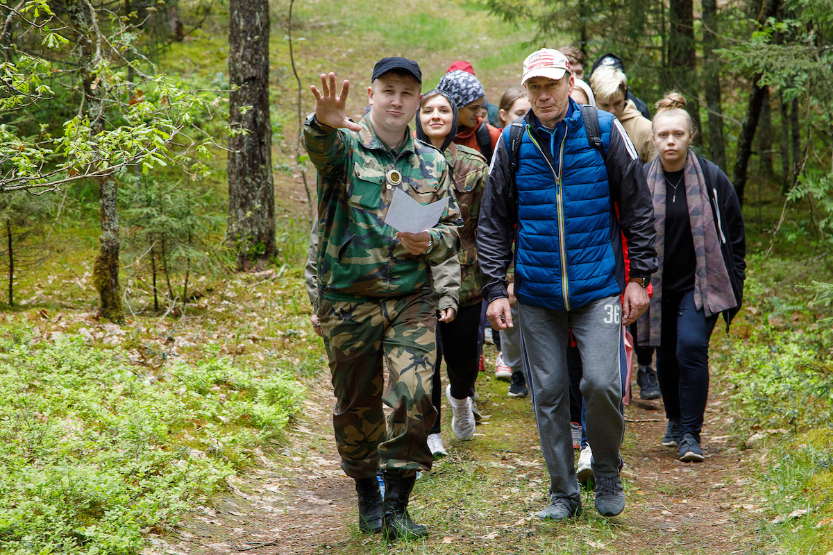Участники похода были разбиты на две команды, для каждой из которых был разработан свой пеший маршрут от ж/д станции (одна команда шла от ст. Княжица, другая – от ст. Старое Село) до места туристической стоянки вблизи деревни Шевино Витебского района. По пути студенты посетили воинские захоронения и мемориалы павшим в годы Великой Отечественной войны защитникам Родины. По прибытию на место туристы разбили палаточный лагерь, заготовили дрова и оборудовали места для приготовления пищи на костре. Следует отметить, что на протяжении двух дней команды соревновались между собой, в том числе, и в уровне организации туристического быта: чистота и порядок на территории лагеря, правильность установления палаток, безопасное обращение с открытым огнём и качество приготовления пищи на костре – всё имело значение. В программу похода входили также соревнования по волейболу, творческий конкурс «Помнит сердце, не забудет никогда…», кулинарный конкурс «Ужин туриста», конкурс туристического плаката и спортивная эстафета по летнему биатлону. Было шумно, весело и интересно!