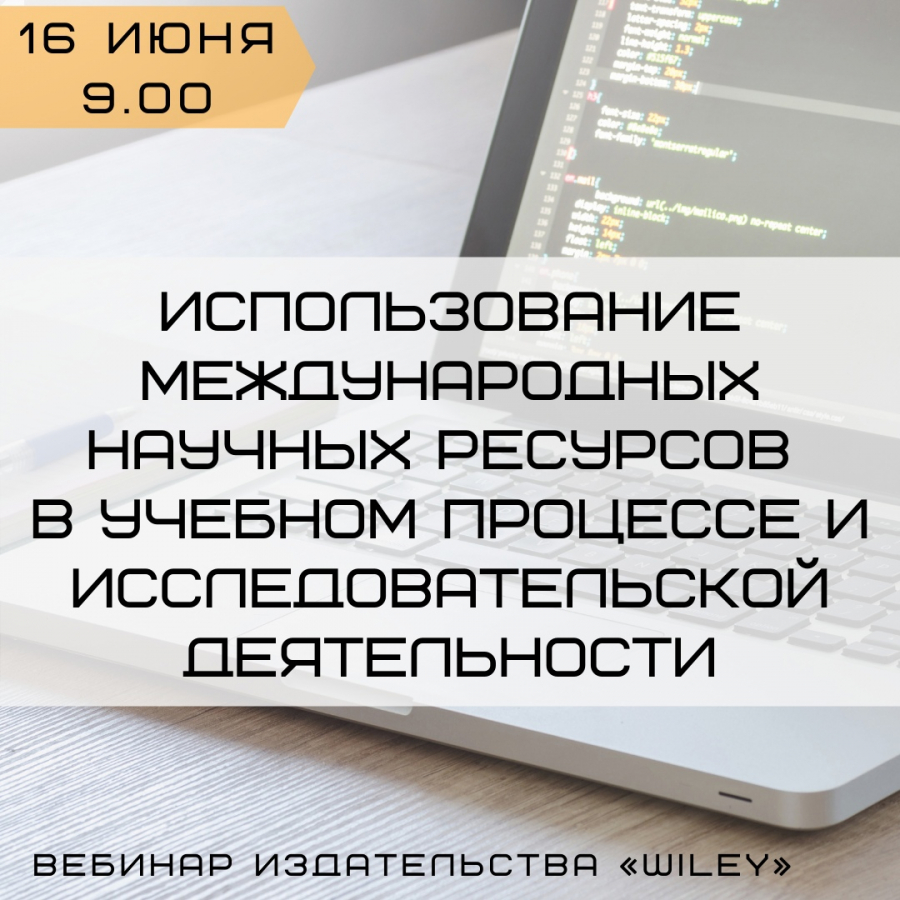 Напоминаем Вам, что 16 июня 2021 года в 9.00 состоится вебинар от издательства Wiley «Использование международных научных ресурсов в учебном процессе и исследовательской деятельности» (Вебинар по журналам Wiley и Кокрейновской библиотеке)