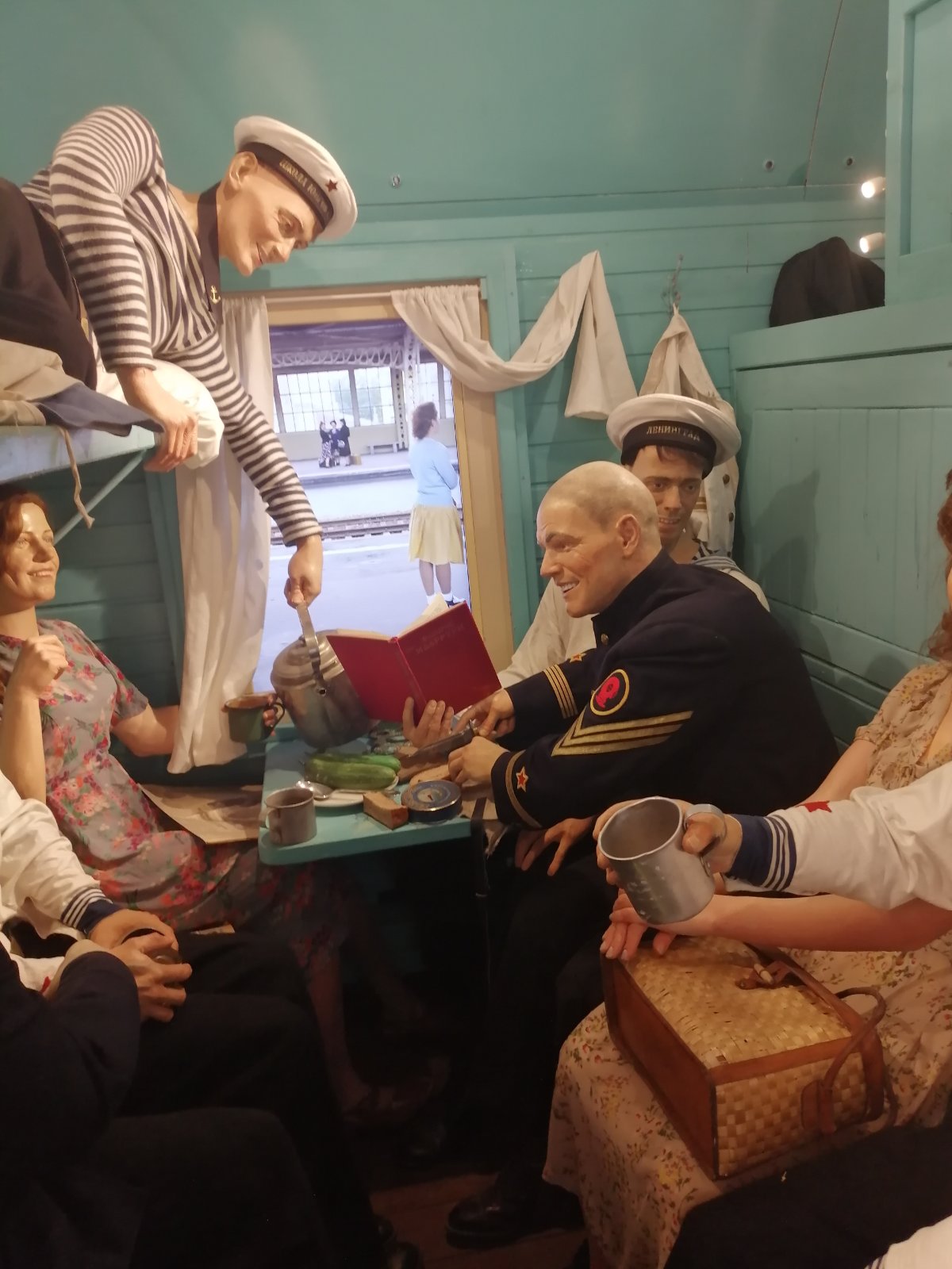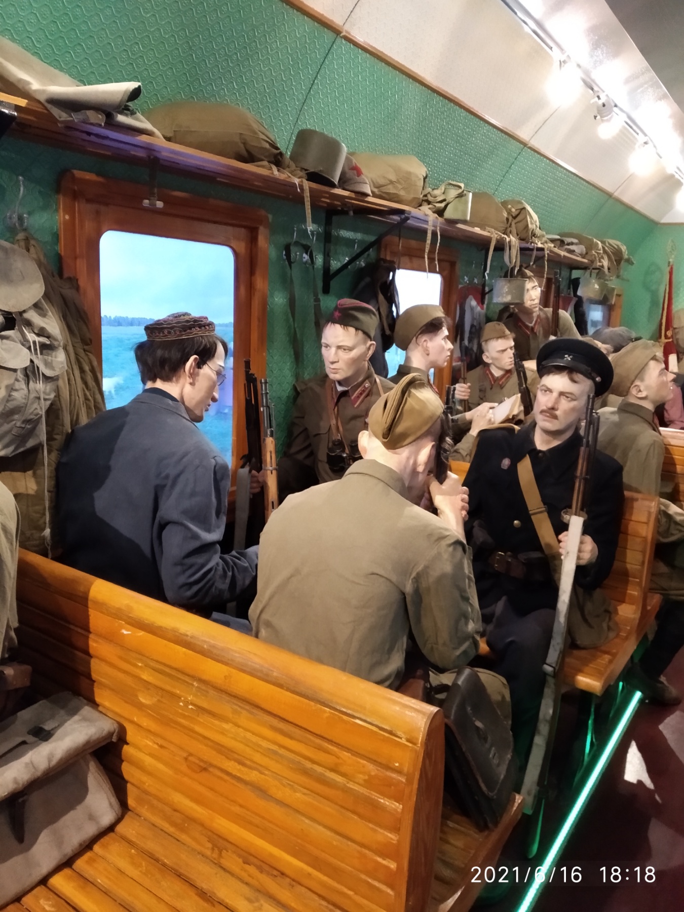 Состав «Поезда Победы» включает 12 вагонов, 9 из которых – экспозиционные. Внутри состава – невероятное количество реалистичных трехмерных панорам, многофигурных композиций и скульптур. В каждом вагоне отражена отдельная страница Великой Отечественной войны, переплетены драматические события военных лет, исторические факты, судьбы и воспоминания людей.
