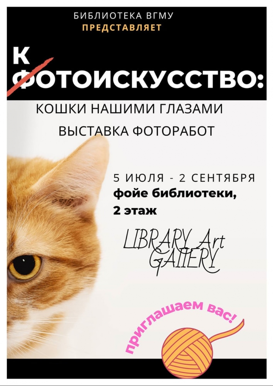 Библиотека приглашает посетить новую выставку «Котоискусство: кошки нашими глазами». Работы представлены в холле второго этажа библиотеки с 5 июля по 2 сентября.