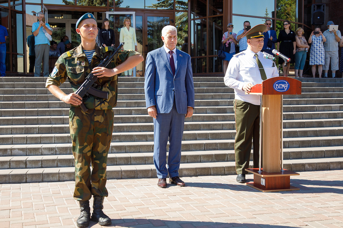 В начале к руководству университета, студентам и гостям праздника со вступительным словом о важности принятия Военной присяги обратился начальник военной кафедры полковник м/с Беспалов Ю.А. После чего студенты дали торжественную клятву.