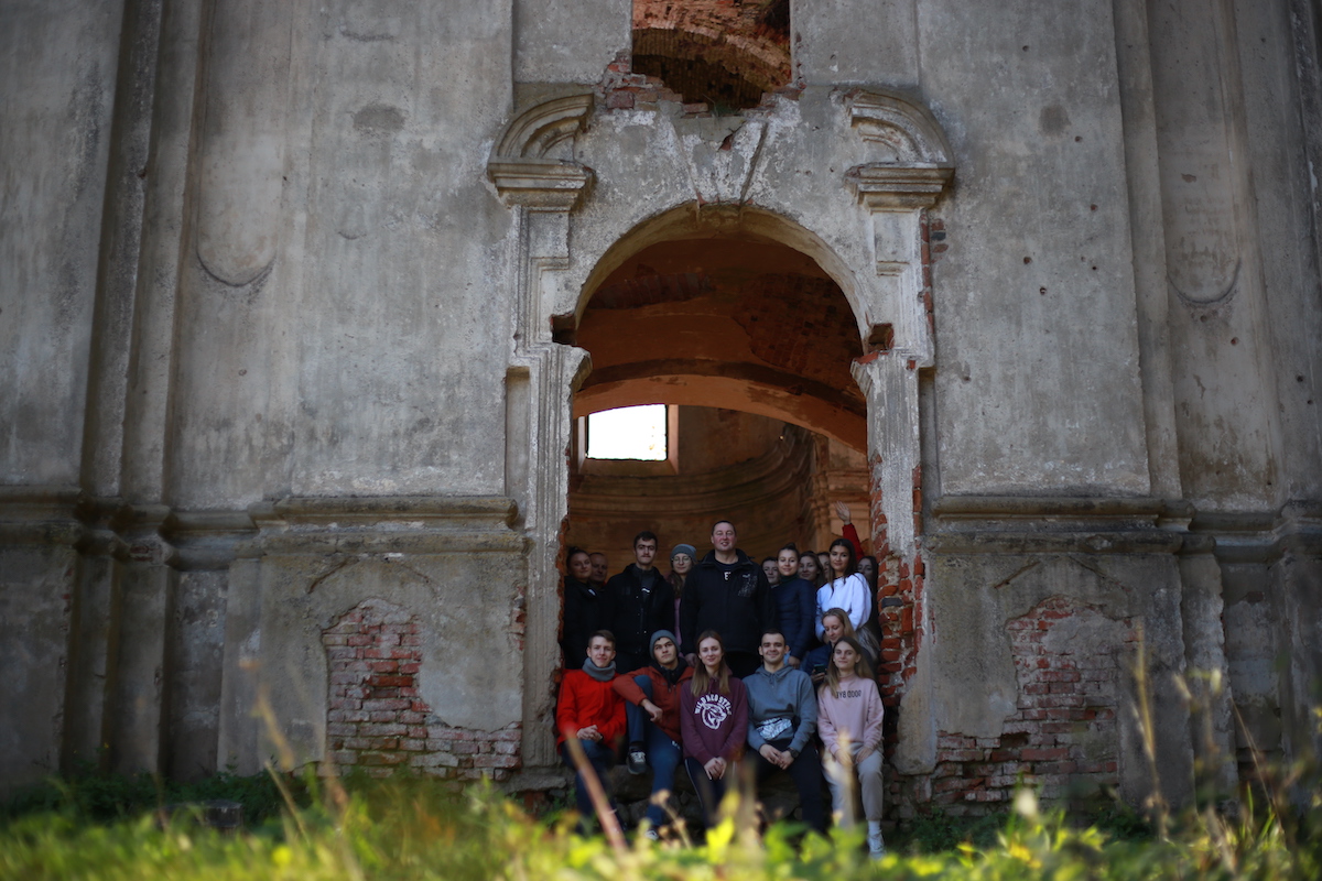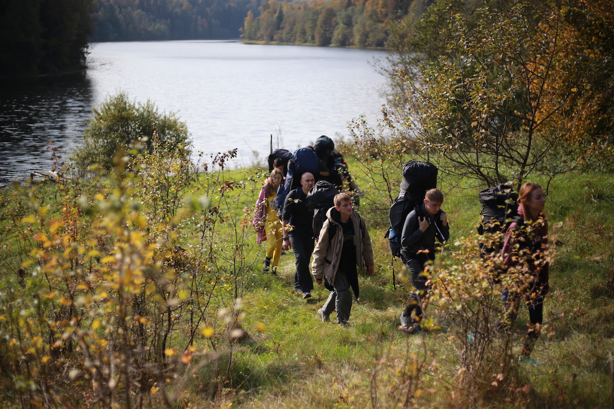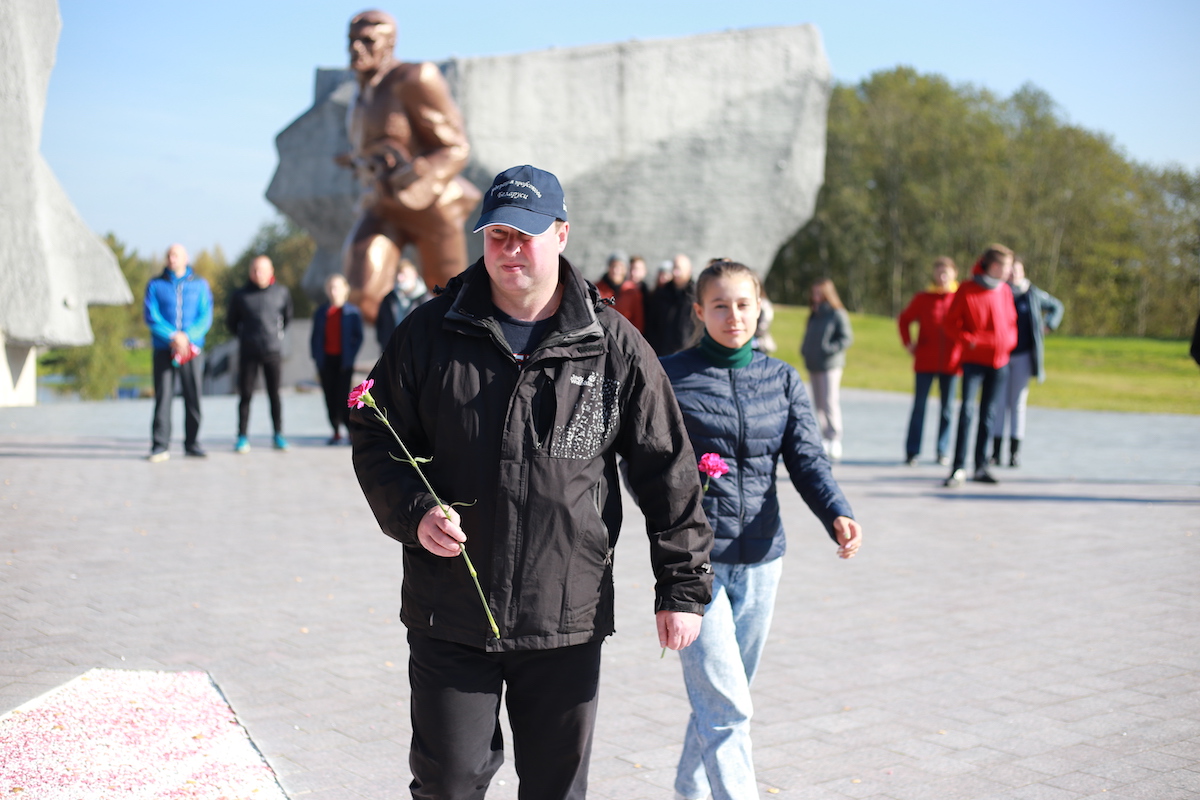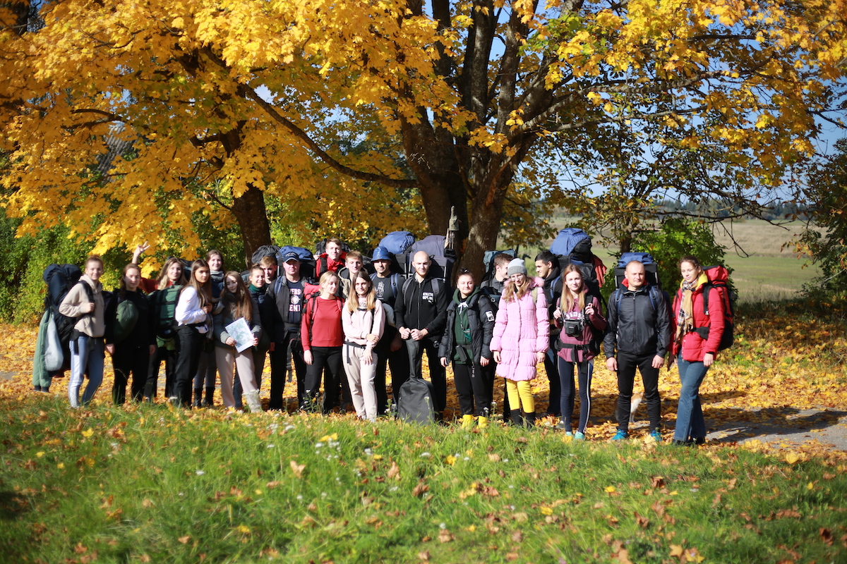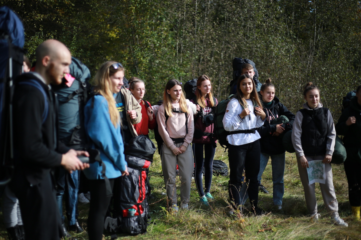 Утром 1 октября участники отправились в Ушачский район Витебской области, где посетили мемориальный комплекс “Прорыв” – памятник партизанской славы республиканского значения. Важным элементом мемориального комплекса является Братская могила, где захоронено более 450 партизан, воинов Советской Армии и мирных жителей, погибших при прорыве вражеской блокады. Участники похода возложили цветы на верхней площадке комплекса и почтили память павших воинов минутой молчания. Далее студенты и сотрудники посетили костел Святой Вероники в деревне Селище, который был построен в 1726 году, но был сильно разрушен во время Великой Отечественной войны. Из поселка Селище и был начат путь к деревне Белюковщина. Пройдя около 12 км и достигнув пункта назначения, участники похода установили палаточный лагерь на берегу озера Городно Ушачского района Витебской области. Работая сообща, студенты и сотрудники обустраивали быт, убрали лес, готовили пищу. Закончился вечер горячим чаем, приготовленным на костре и песнями под гитару у ночного огня.