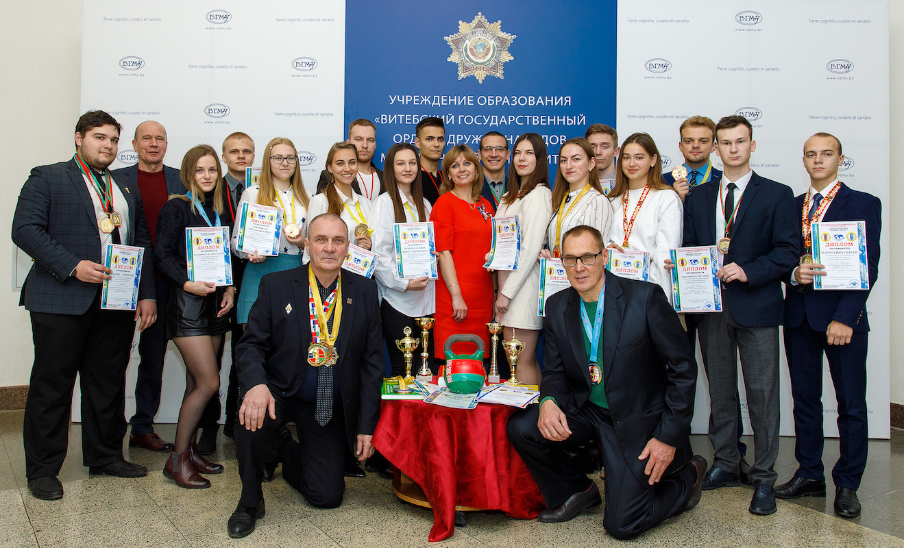 13 и 16 октября 2021 года на спортивной базе Витебского государственного университета имени П.М. Машерова состоялись чемпионат г. Витебска по гиревому спорту и этап IV Всемирной олимпиады по гиревому триатлону, в которых приняли участие студенты и сотрудники ВГМУ, а также члены их семей. Организаторами соревнований выступили отдел спорта и туризма Витебского городского исполнительного комитета совместно с «Белорусской федерацией гиревого спорта». По итогам состязаний команда студентов ВГМУ заняла 1-е общекомандное место, а в личном зачёте студенты и сотрудники завоевали 16 призовых мест. Поздравляем с успешным выступлением и желаем новых спортивных побед!