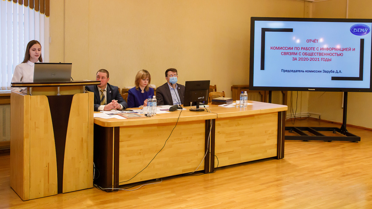 Далее с докладом выступил Давыдов Егор Сергеевич, председатель комиссии по социальной защите студентов, который подробно рассказал об адресной социально-экономической защите студенческой молодежи ВГМУ в отчетном периоде. Заруба Дина Андреевна, председатель комиссии по работе с информацией и связям с общественностью, подробно рассказала об информационной работе, проводимой ППО студентов.