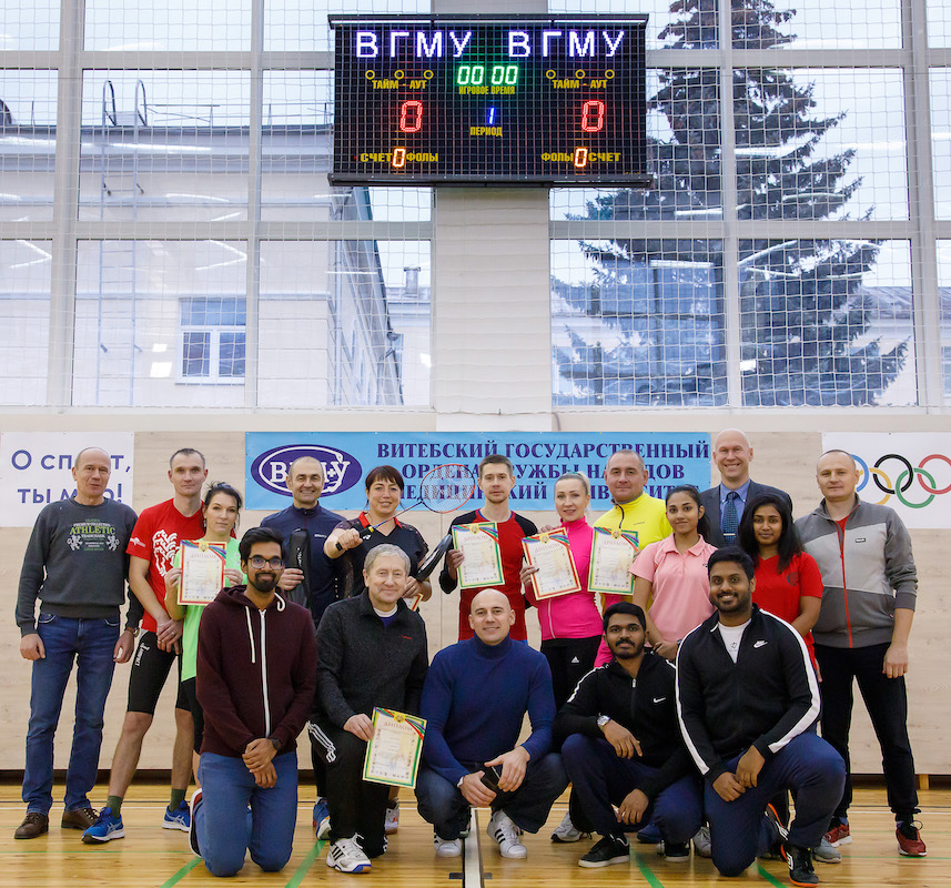 25-26 ноября 2021 г. в большом спортивном зале университета прошли соревнования по бадминтону среди преподавателей учреждений среднего специального и высшего образования Октябрьского района г. Витебска с участием семи команд, организованные спортивным клубом ВГМУ совместно с администрацией Октябрьского района г. Витебска.