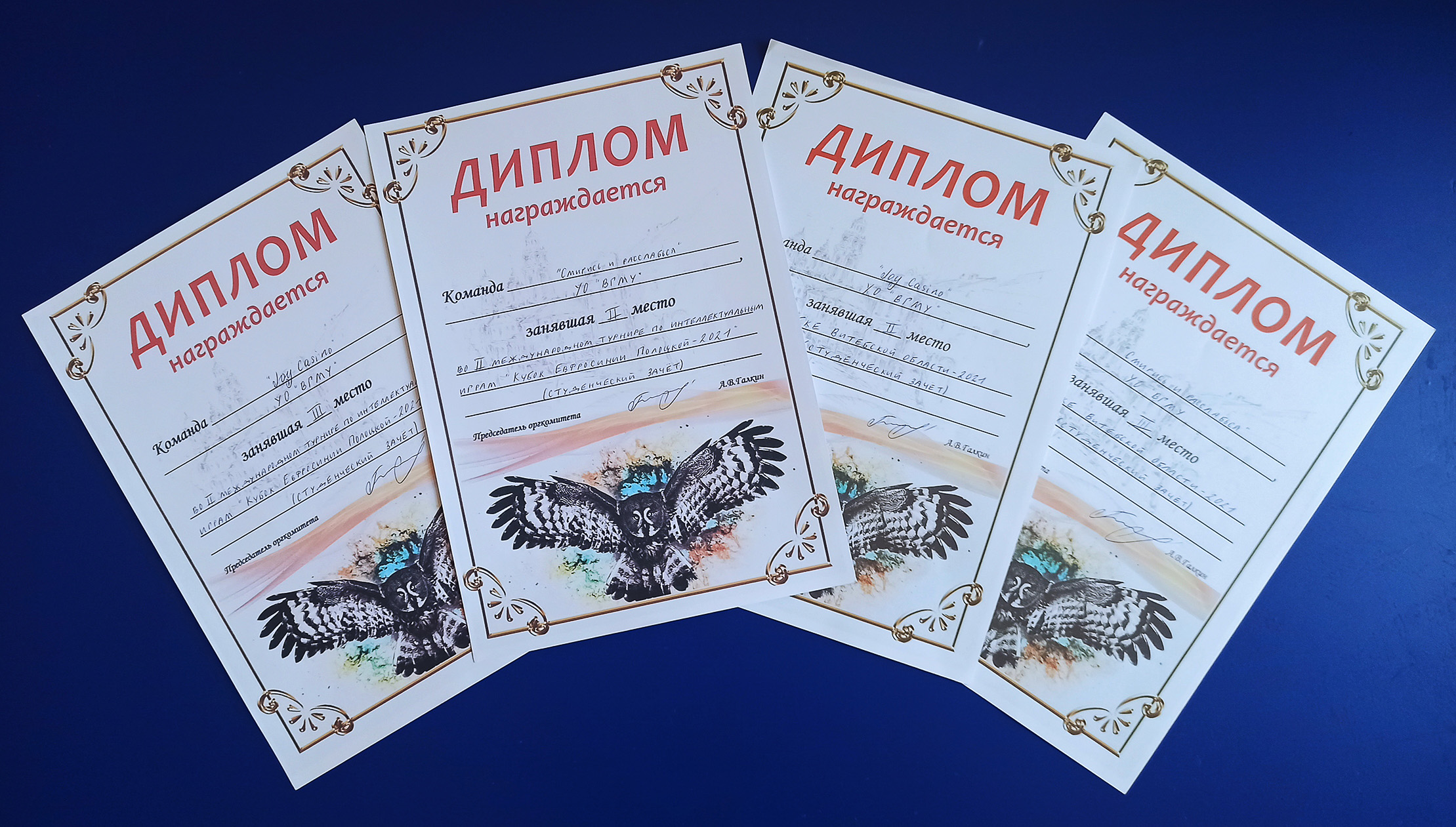 4-5 декабря 2021 года на базе учреждения образования «Полоцкий государственный университет» состоялся II международный турнир по интеллектуальным играм «Кубок Евфросинии Полоцкой-2021». В студенческом зачете турнира принимали участие две команды ВГМУ «Смирись и расслабься» и «Joy Casino», занявшие второе и третье места соответственно. Поздравляем команды и желаем им новых успехов на поприще интеллектуальных игр!