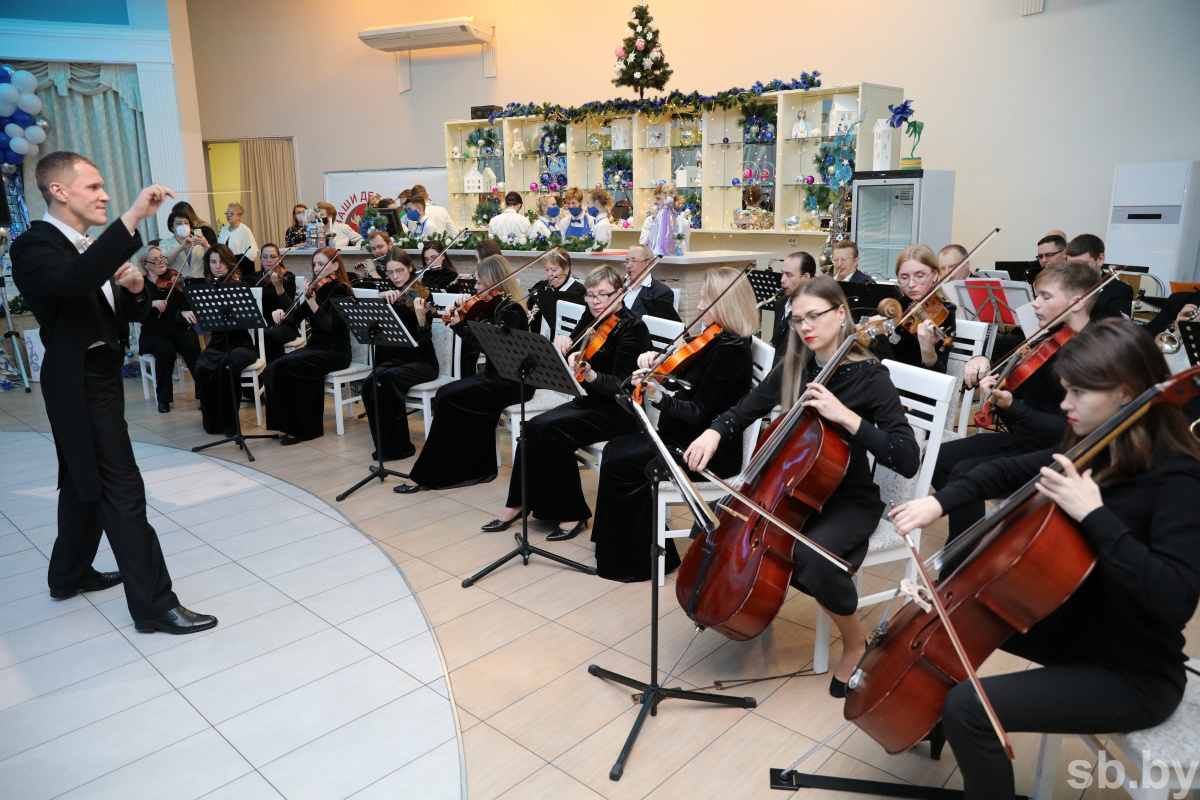 Далее все присутствующие окунулись в мир полонеза, вальса, венгерки, падепатинера в сопровождении Симфонического оркестра Витебской областной филармонии. Чарующая музыка, бальные наряды, красочные декорации – все это передавало невероятную атмосферу новогоднего праздника. Классическую часть бала дополнили выступления солистов Витебской областной филармонии, заслуженного ансамбля классического танца «Пируэт».