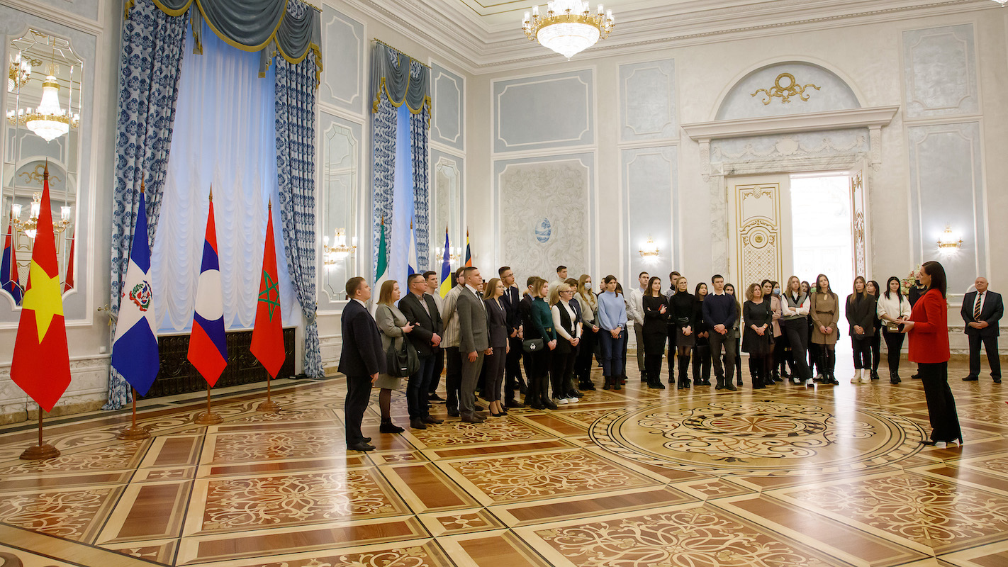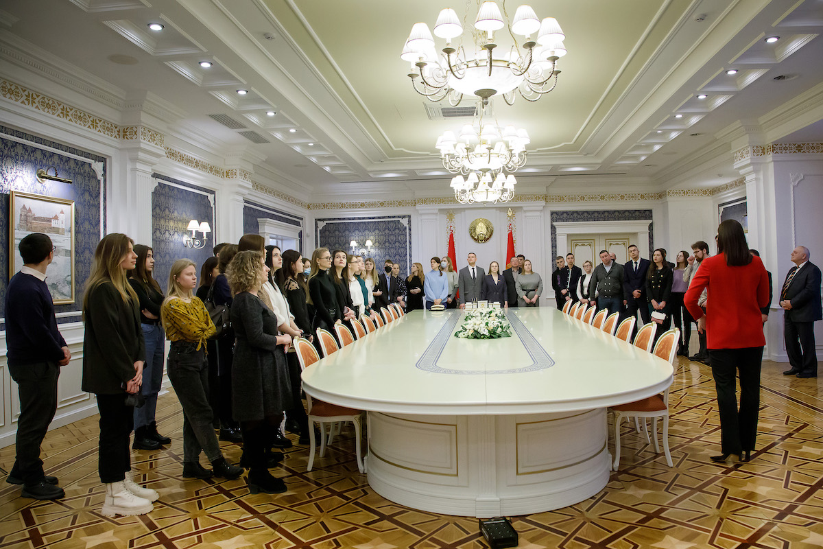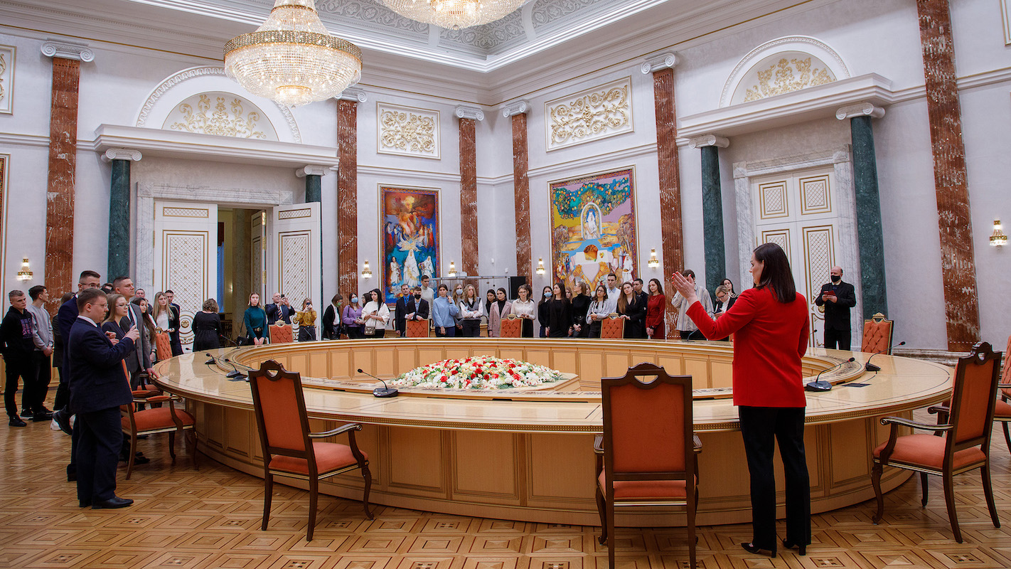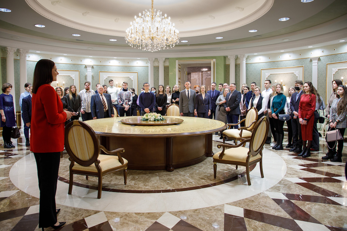 eks dvorets nezavisimosti 012 февраля 2022 года более шестидесяти студентов и сотрудников ВГМУ побывали на экскурсии во Дворце Независимости в Минске. Пресс-секретарь Президента Республики Беларусь Наталья Эйсмонт лично встретила нашу делегацию и провела увлекательную экскурсию, длившуюся почти три часа. Интересно было очень, впечатления остались самые яркие. Спасибо руководству университета за предоставленную возможность посетить это уникальное место!