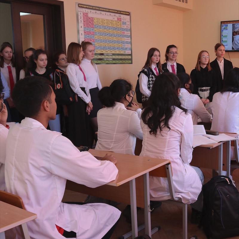 22 марта ВГМУ в очередной раз открыл двери для школьников и абитуриентов. В ходе экскурсии студенты стоматологического, фармацевтического, педиатрического и лечебного факультетов рассказали ребятам об основных составляющих учебного процесса и возможных перспективах после окончания университета.