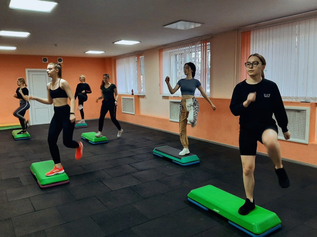 Занятия по степ-аэробике в фитнес-клубе университета «Fortius» проходят по следующему графику: понедельник - 18.10 (группа отечественных студентов), среда - 18.10 (группа иностранных студентов).