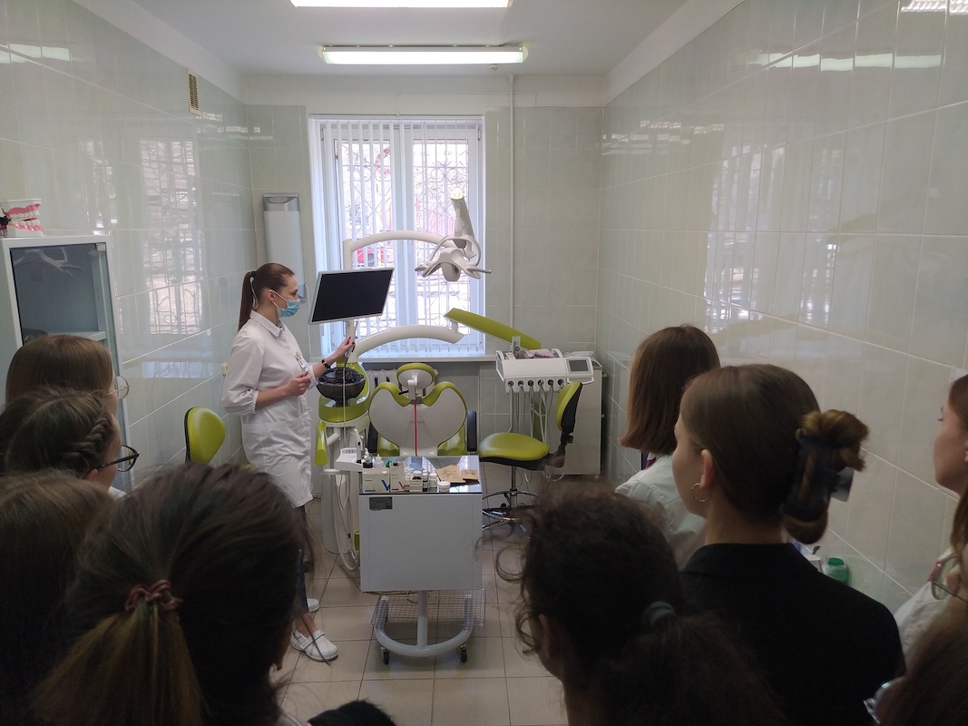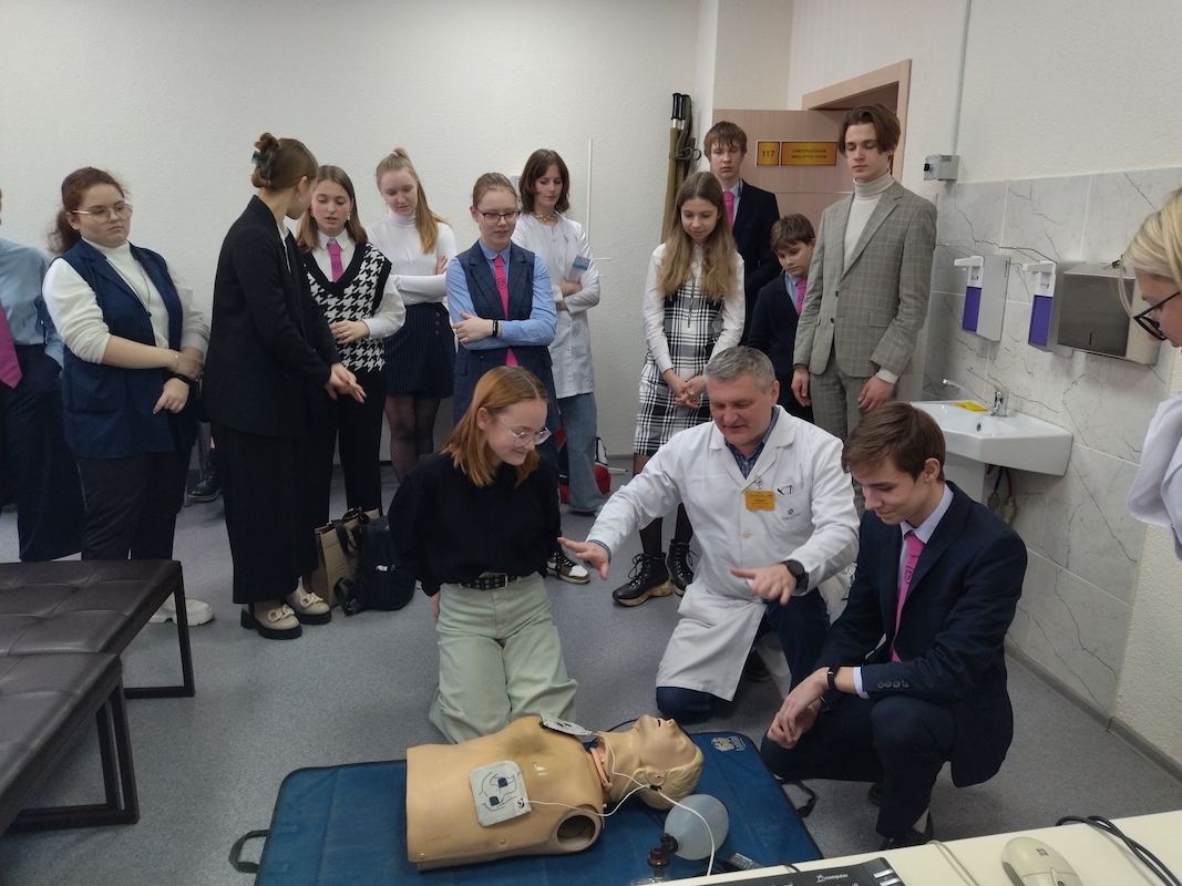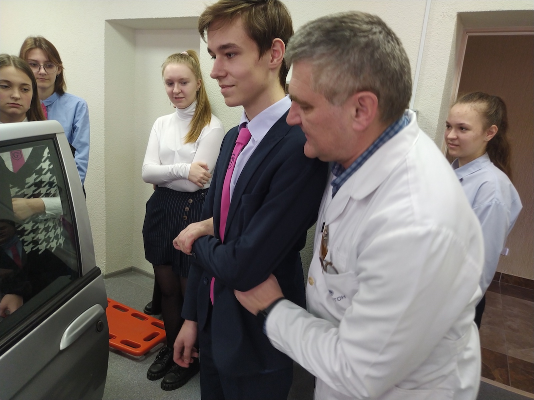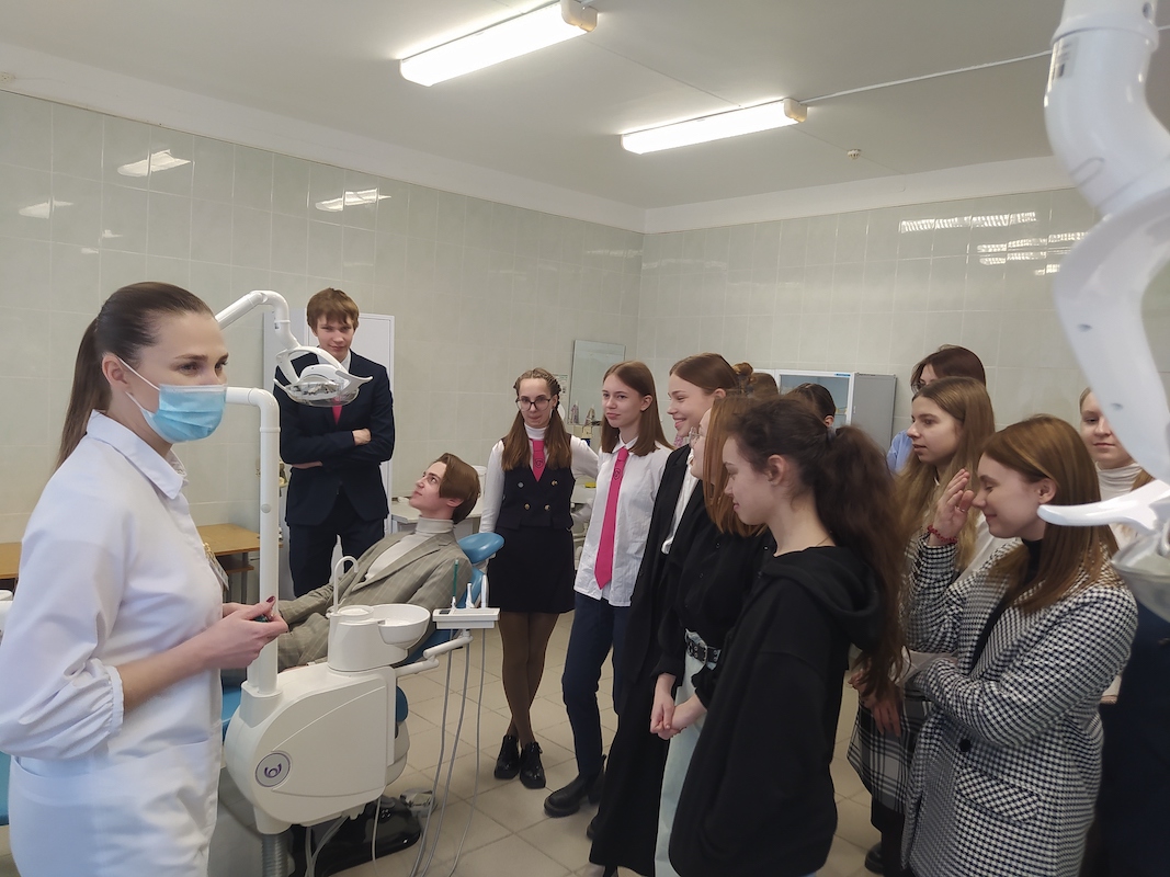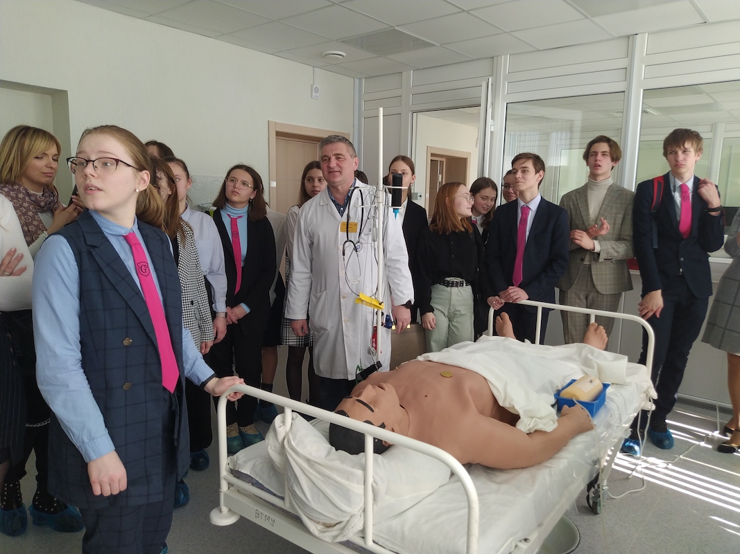 Следующим этапом нашей экскурсии была стоматологическая клиника, где главный врач А.А.Пожарицкая познакомила с работой стоматологов, продемонстрировала те большие возможности, которые имеют студенты нашего университета, обучаясь на стоматологическом факультете. Увлекательной частью экскурсии стало посещение учебного центра практической подготовки и симуляционного обучения, где будущие студенты познакомились с современным методиками подготовки будущих врачей с использованием тренажеров. Начальник центра Редненко В.В. объяснил, как правильно оказывать помощь пострадавшим при дорожно-транспортном происшествии, продемонстрировал работу различных станций центра. Студенты 1 курса педиатрического и 5 курса лечебного факультетов познакомили ребят с оказанием первой помощи при внезапной смерти, оказанием реанимационной помощи новорожденным. Ученики гимназии с большим интересом пробовали себя в роли врачей, работая на тренажерах, обучаясь непрямому массажу сердца, работе с дефибрилятором. Надеемся, что ребята после посещения нашего университета, твердо приняли решение о будущей специальности, мы будем рады видеть их нашими студентами.