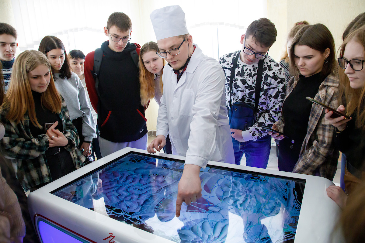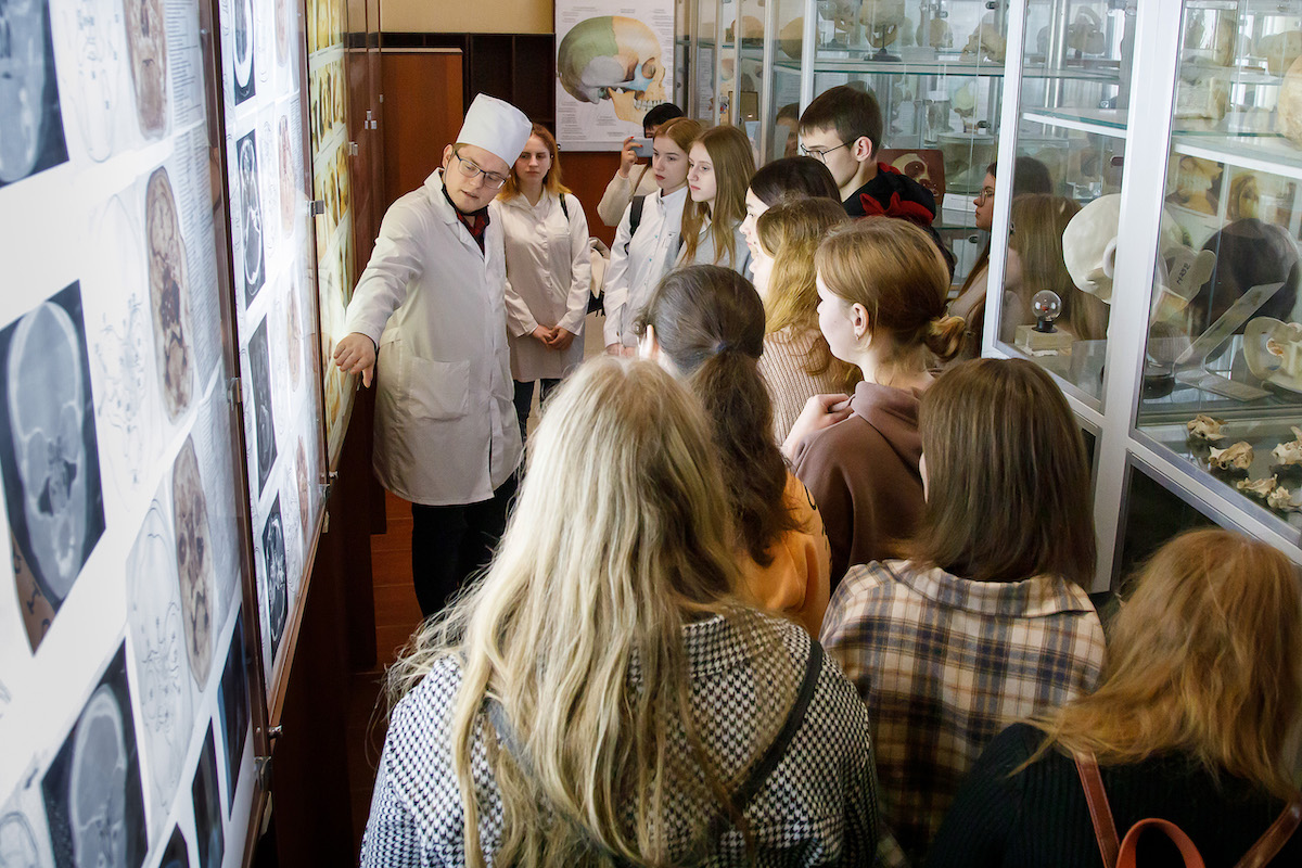 При посещении анатомического музея на примере экспонатов и стендов с клиническими случаями абитуриенты узнали все тонкости и некоторые углубленные детали изучения анатомии человека в медицинском университете. Учащимся представилась возможность заглянуть внутрь организма и рассмотреть части тела человека: артерии и вены или, например, клетки печени с помощью современных технологий и 3D атласа модели «Пирогов». Они многое узнали о методах изучения тела человека и ознакомились с историей медицины.