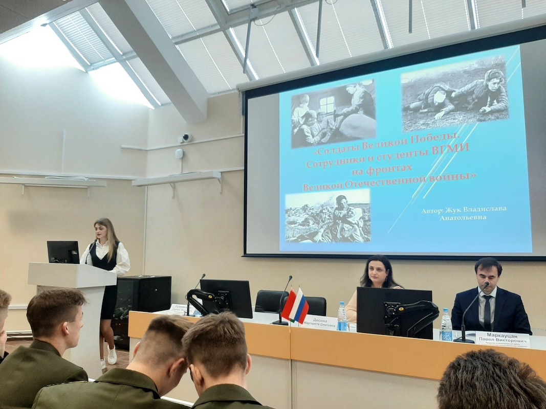 Студентки лечебного факультета 1-го курса Владислава Жук и 2-го курса Соколова Юлия выступили с докладами "Подвиг медиков в годы Великой Отечественной войны "и "Солдаты Великой Победы. Сотрудники и студенты ВГМИ на фронтах Великой Отечественлечебного факультетаной войны". По итогам форума их доклады были отмечены сертификатами и памятными подарками. После окончания конференции делегация нашего университета приняла участие в закладке Аллеи памяти "Сирень Победы" в честь подвига медицинских работников в годы Великой Отечественной войны.