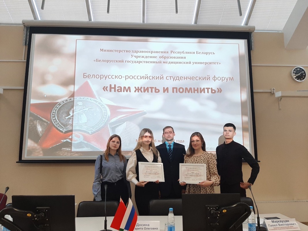 5 мая студенты Витебского государственного ордена Дружбы народов медицинского университета вместе с доцентом кафедры социально-гуманитарных наук Мартинкевичем И.А. приняли участие в белорусско-российском студенческом форуме "Нам жить и помнить", который в этом году проходил на базе Белорусского государственного медицинского университета.