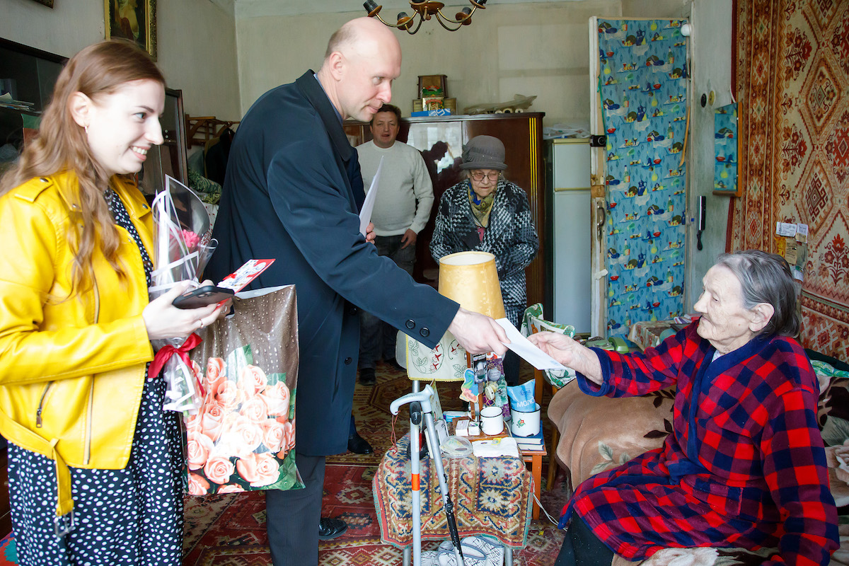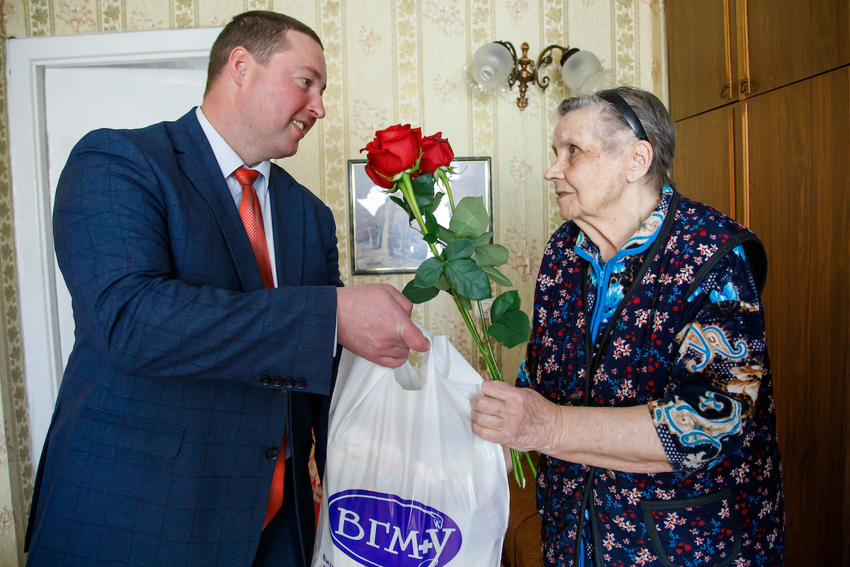 6 мая 2022 года, в канун Дня Победы, ректор ВГМУ Анатолий Тадеушевич Щастный, проректор по воспитательной и идеологической работе ВГМУ Наталья Геннадьевна Болтрушевич, председатель профкома сотрудников ВГМУ Алексей Константинович Погоцкий, председатель профкома студентов ВГМУ Александр Михайлович Мясоедов, председатель совета ветеранов ВГМУ Надежда Ивановна Василенко посетили ветеранов и узников Великой Отечественной войны на дому и поздравили их с праздником Великой Победы, вручив им материальное вознаграждение от администрации университета, цветы и подарки от профсоюзного комитета.