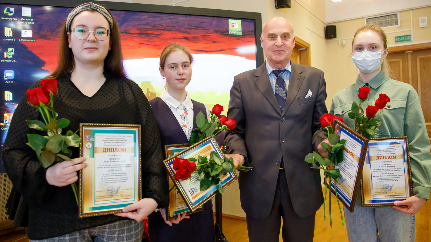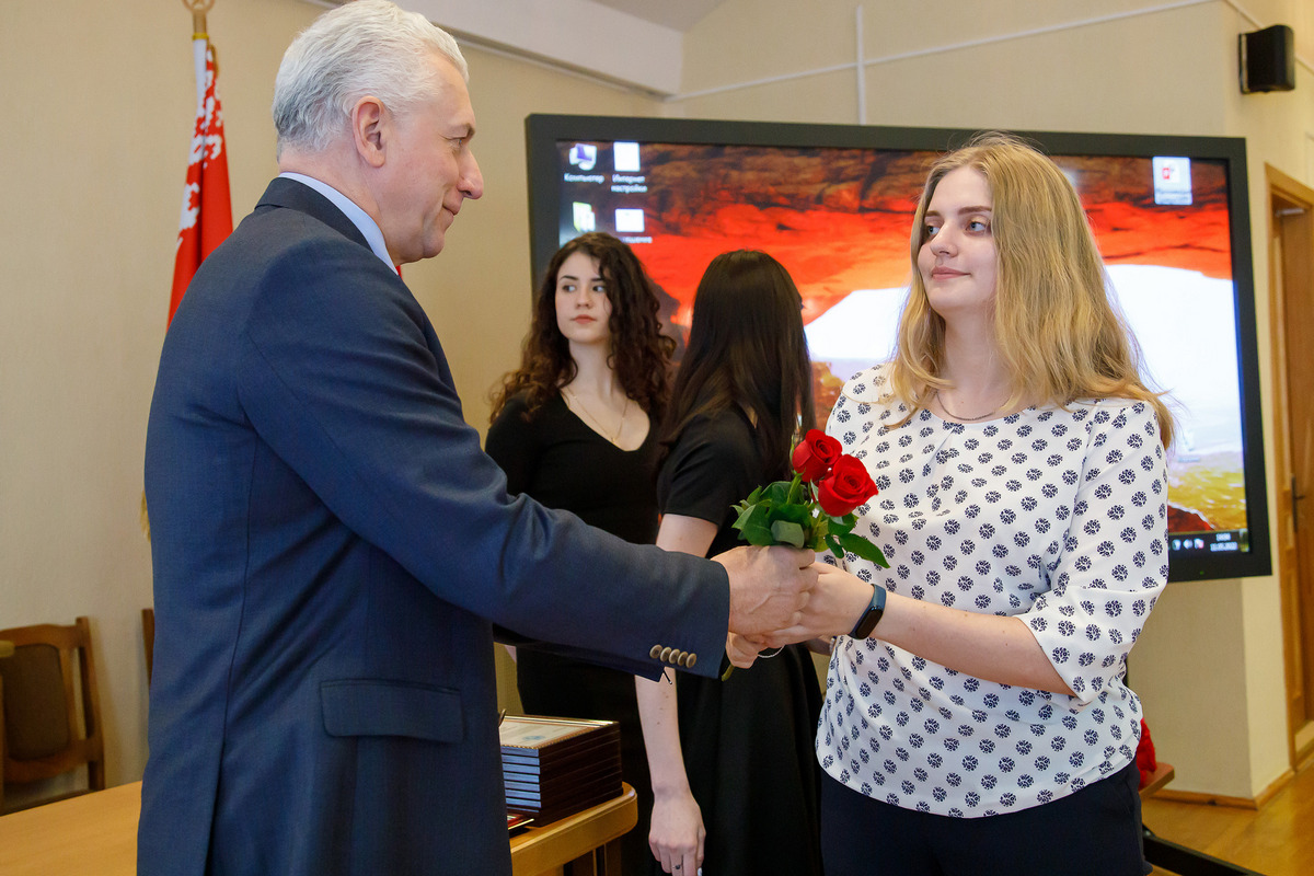 Ректор университета профессор Анатолий Тадеушевич Щастный от лица ректората, Совета университета поздравил аспирантов третьего года дневной формы обучения Мацкевич Наталью Валерьяновну, Савкова Ивана Алексеевича, Генералова Сергея Игоревича и студентов Сушкову Светлану Александровну, Ефремову Анну Ярославовну, Палько Вадима Севериновича с назначением стипендии Президента Республики Беларусь на 2022 год; доцента кафедры челюстно-лицевой хирургии и хирургической стоматологии с курсом ФПК и ПК, к.м.н. Гончарову Анна Игоревну с назначением стипендии Президента Республики Беларусь талантливым молодым ученым на 2022 год; доцента кафедры пропедевтики внутренних болезней, к.м.н. Прищепенко Вячеслава Александровича и заведующего кафедрой челюстно-лицевой хирургии и хирургической стоматологии с курсом ФПК и ПК, д.м.н., доцента Кабанову Арину Александровну с присвоением звания «Лауреат премии Витебского областного исполнительного комитета талантливым молодым ученым».