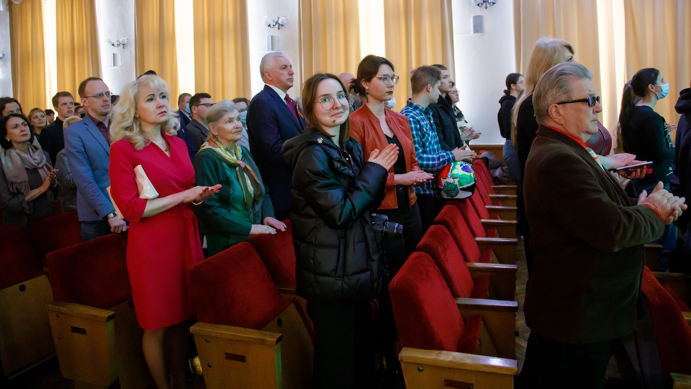Когда Валерия объявила, что в зале присутствуют ветераны: доктор медицинских наук, профессор Михаил Александрович Никольский и кандидат медицинских наук, доцент Зоя Ивановна Веремеева – все присутствующие приветствовали их стоя. В ходе тематической концертной программы, подготовленной творческими коллективами студенческого клуба, зрители вставали ещё дважды: почтить минутой молчания светлую память павших за нашу свободу и независимость и вместе с артистами спеть легендарную песню «День Победы». Стихи, песни, хореографические номера, видеофрагменты, посвящённые подвигу нашего народа в Великой Отечественной войне, не оставили равнодушным никого.