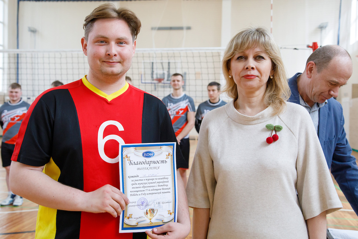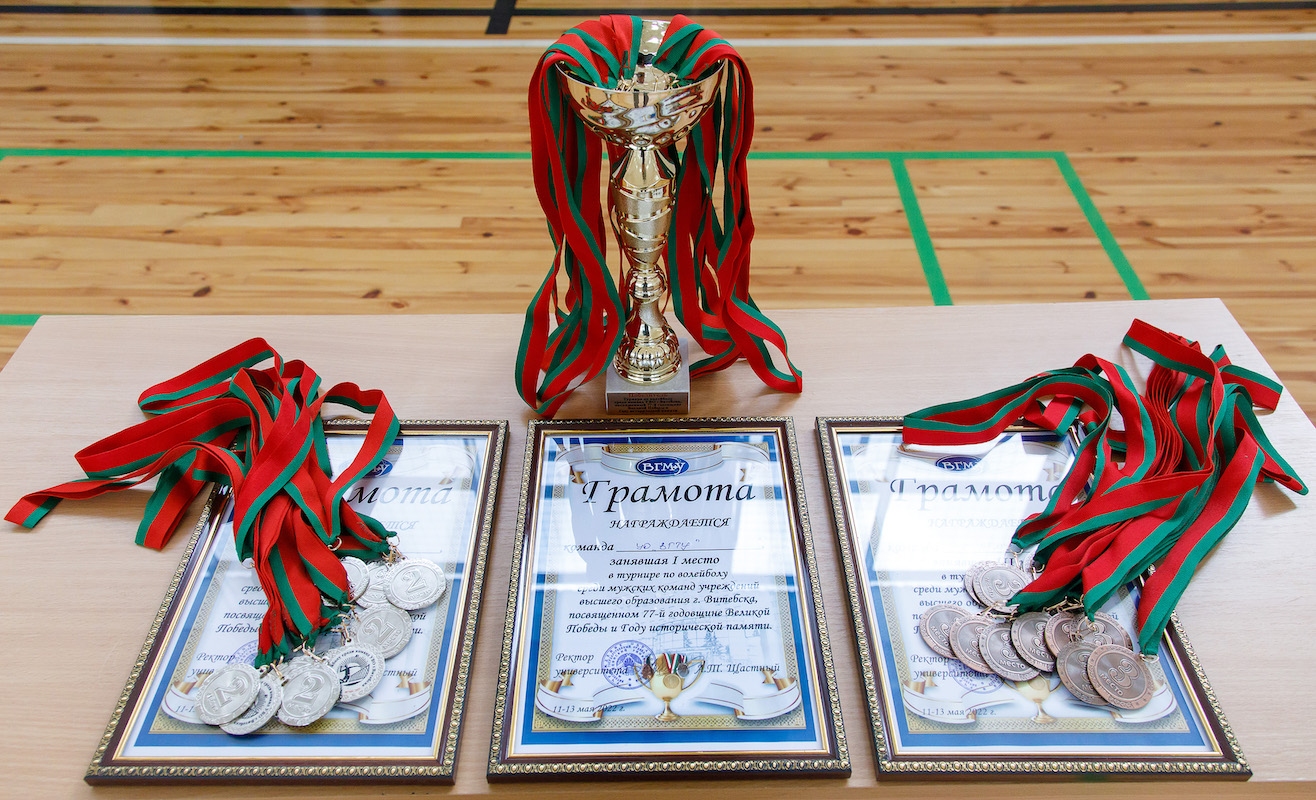 С 11 по 13 мая 2022 года в большом спортивном зале ВГМУ впервые прошел турнир по волейболу среди мужских команд учреждений высшего образования г. Витебска, посвященный 77-й годовщине Великой Победы и Году исторической памяти.