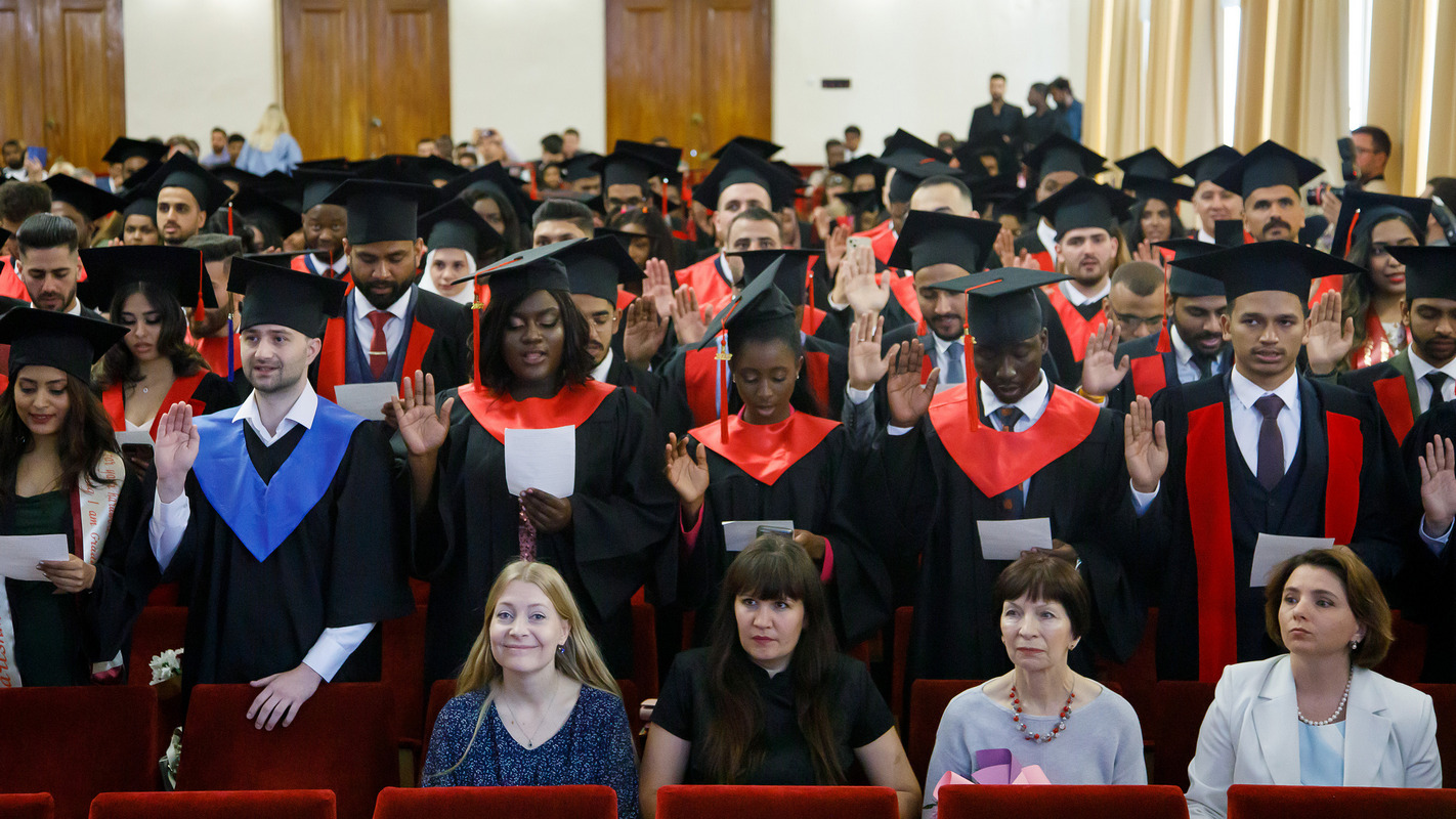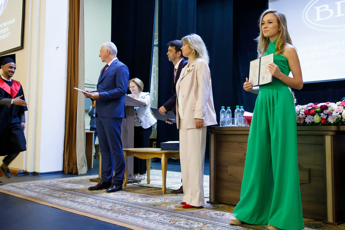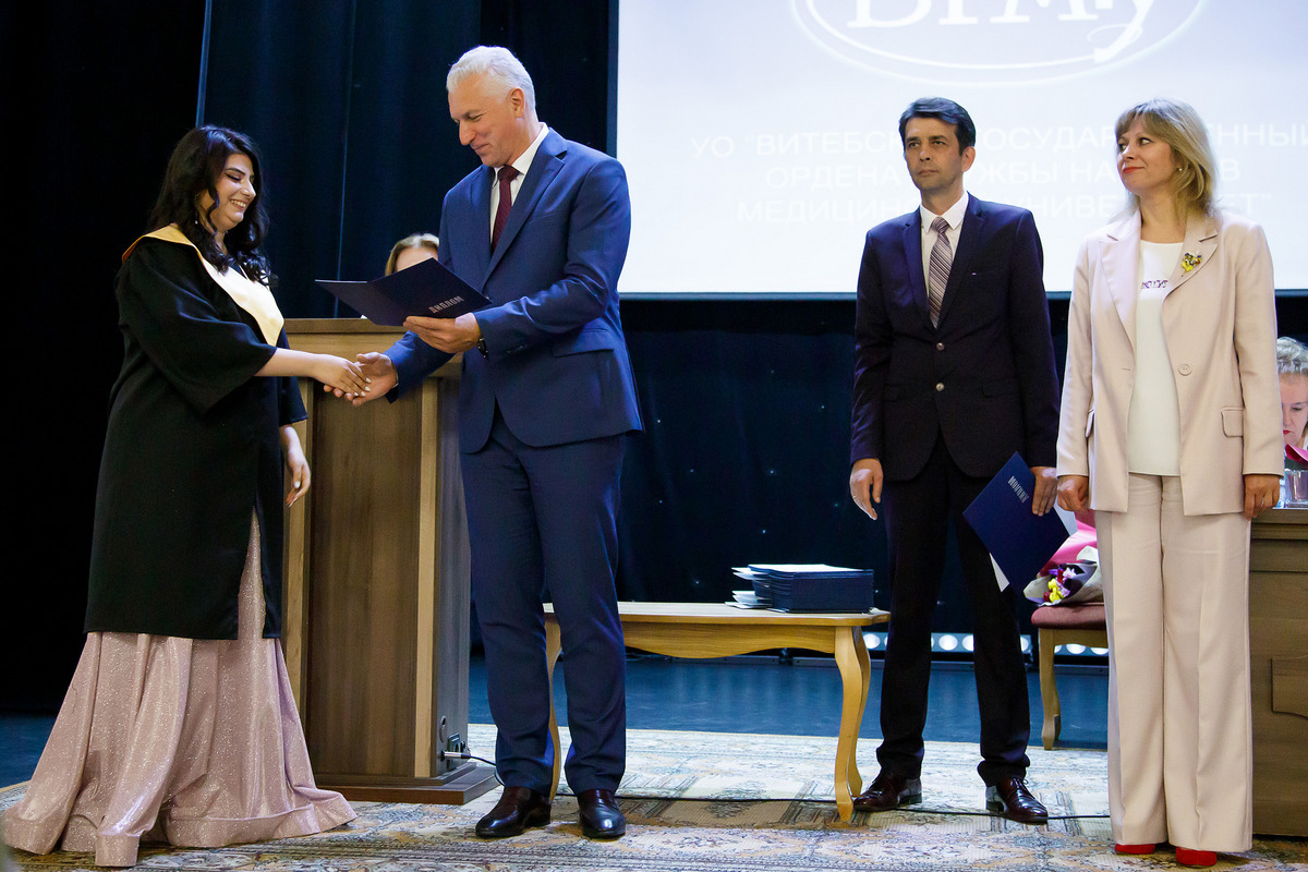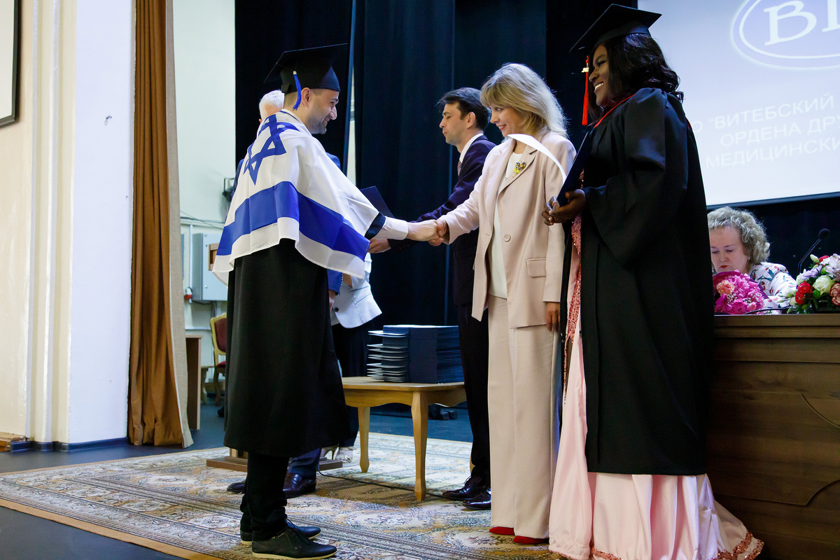 22 июня в ВГМУ прошли торжественные Советы университета, посвящённые 36-му выпуску «Докторов медицины» и 27-му выпуску «Провизоров» факультета подготовки иностранных граждан. С дипломом выпускника ВГМУ в Шри-Ланку вернётся 61 врач, в Туркменистан – 25, в Индию – 15, в Ливан – 11, в Нигерию – 8, в Ирак – 7, в Палестину – 5, в Израиль – 4, в Мальдивы – 4, в Гану, Иорданию и Российскую Федерацию – по 3 специалиста, в Украину – 2, в Азербайджан, Бангладеш, Германию, Йемен, Казахстан, Судан – по одному специалисту. С дипломом провизора домой вернутся 2 студента из Ливана, 1 из Туркменистана и 1 из Нигерии.