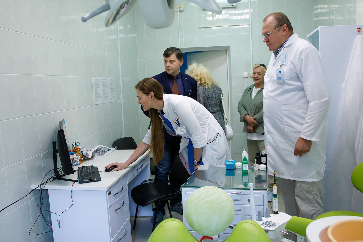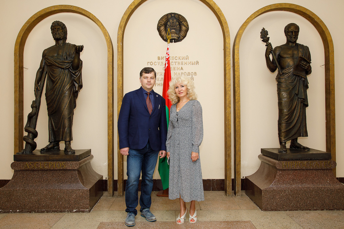 8 июля с рабочим визитом ВГМУ посетил проректор по лечебной работе Гродненского государственного медицинского университета Аносов Виктор Сергеевич. Встретила гостя и провёла ознакомительные экскурсии по учебным корпусам университета, санаторию-профилакторию ВГМУ, Университетской стоматологической поликлинике, Учебному центру практической подготовки и симуляционного обучения, Клинике ВГМУ проректор по учебной и лечебной работе ВГМУ Щупакова Алина Николаевна. Целью визита коллеги из Гродненского университета было знакомство с новыми подходами к практической подготовке студентов, организацией работы университетских клиник ВГМУ, использовании современного оборудования в учебном процессе и оказанию услуг населению, организации быта и отдыха студентов в Витебском медицинском университете. В свою очередь, Виктор Сергеевич поделился интересным опытом в использовании новых информационных технологий и специализированных компьютерных программ при организации работы в Гродненском медицинском университете.