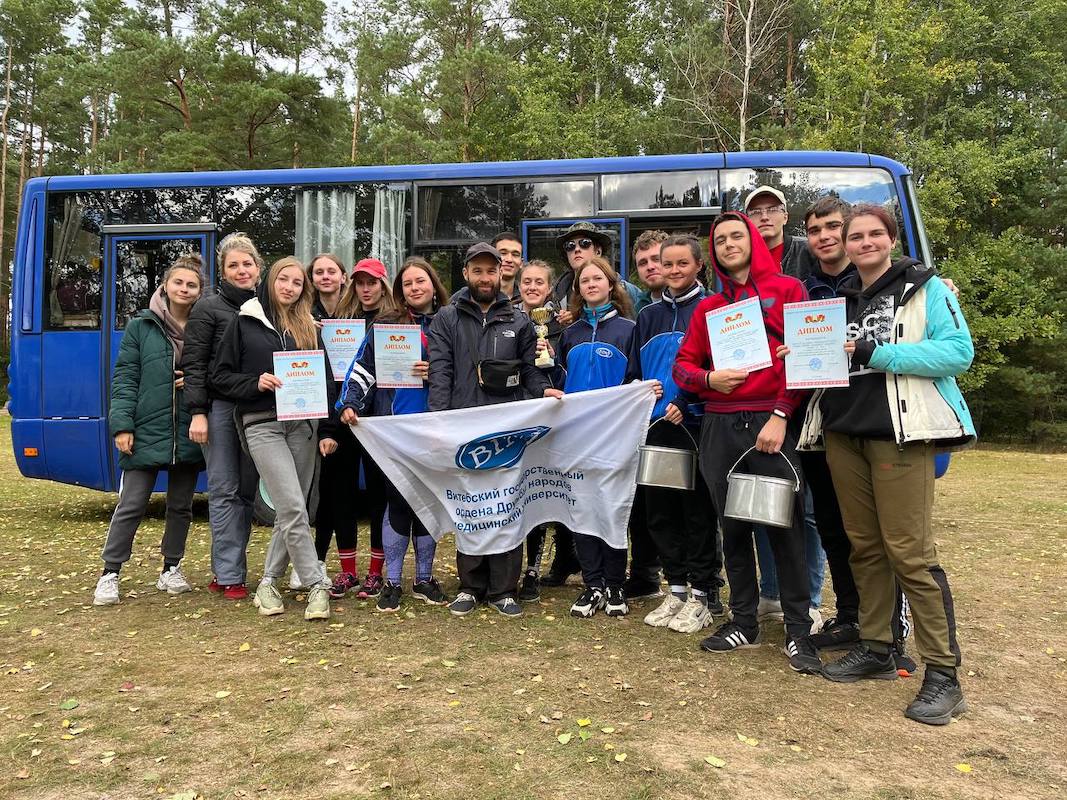 В туристическом слете приняло участие 19 команд учреждений высшего образования Республики Беларусь, в том числе и студенты нашего университета. Команда ВГМУ под руководством тренера Васёхи Алексея Алексеевича, старшего преподавателя кафедры физической культуры, на протяжении трех дней соревновалась в спортивной и конкурсной программе туристического слета.