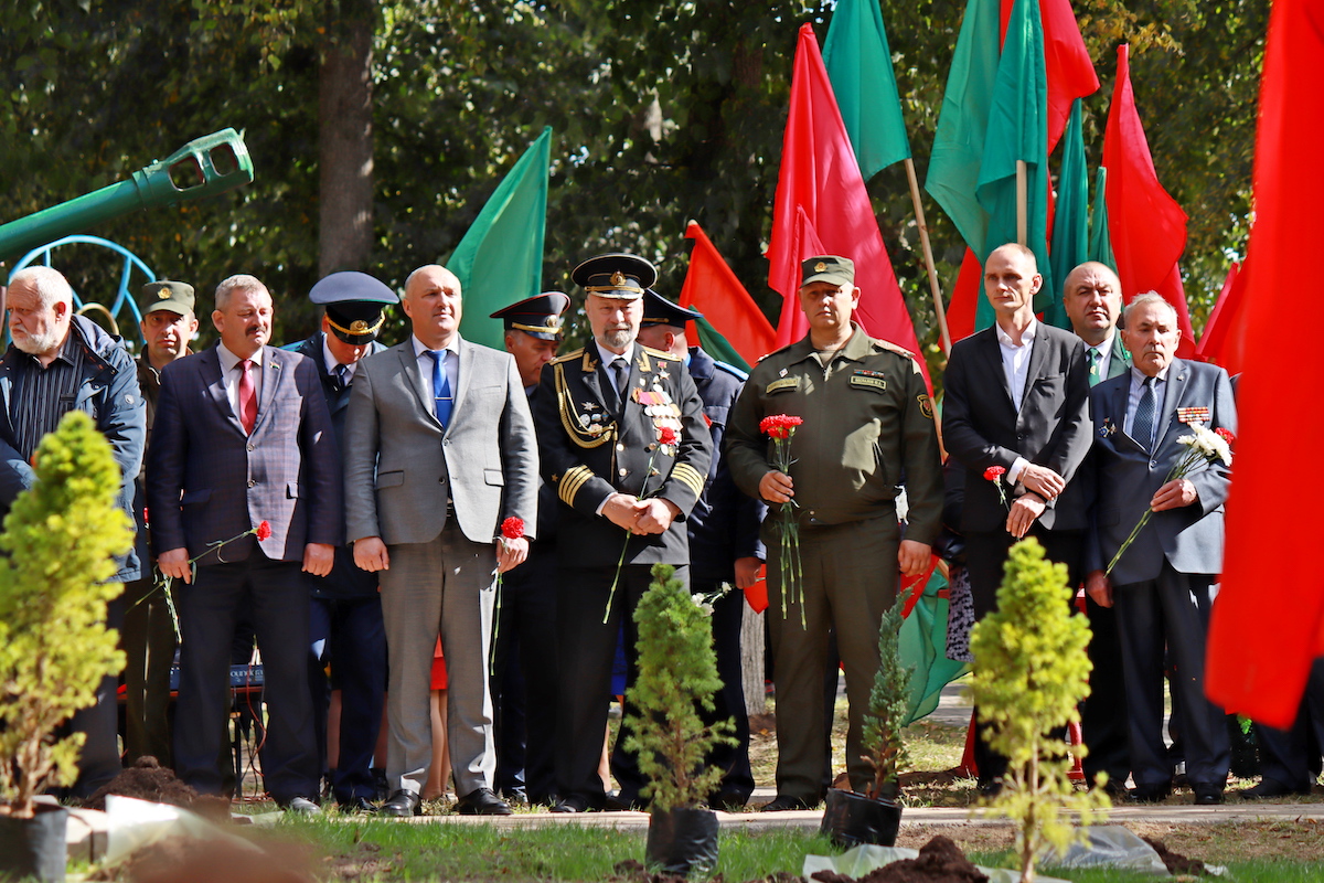В церемонии открытия и возложении цветов к памятному знаку приняли участие преподаватели Витебского государственного медицинского университета и студенты-члены военно-патриотического клуба «Служу Отечеству!» В этот же день в центральном сквере Богушевска были посажены деревья на Аллее памяти, работала полевая кухня, а также действовала интерактивная выставка современных видов вооружений, организованная 103-й Витебской гвардейской воздушно-десантной бригадой, оркестр которой обеспечивал музыкальное сопровождение мероприятия.