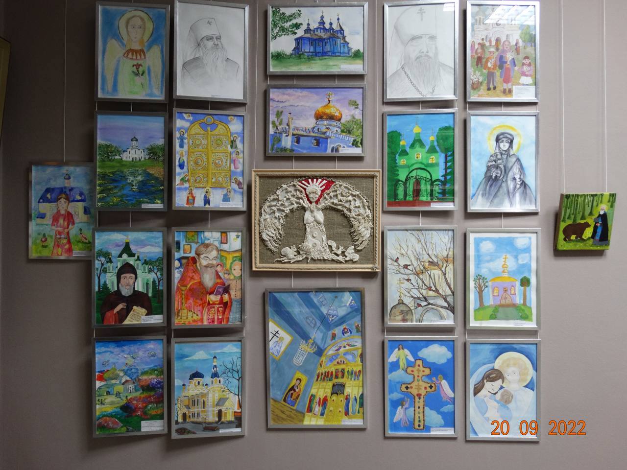 На экспозиции представлены фотоснимки из личного архива митрополита Филарета, а также работы VI Международного художественного пленэра и Всебелорусского конкурса детских рисунков на тему истории и современности Православной церкви в Беларуси.