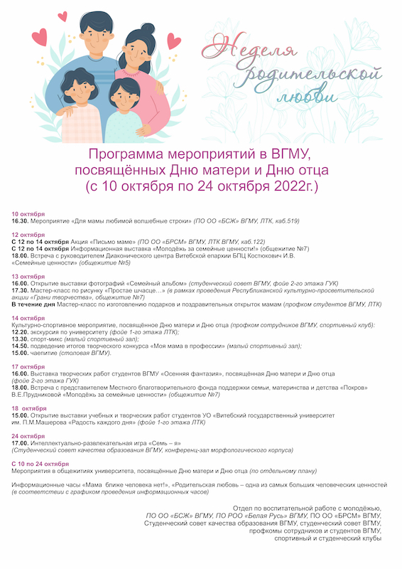 Программа мероприятий в ВГМУ, посвящённых Дню матери и Дню отца