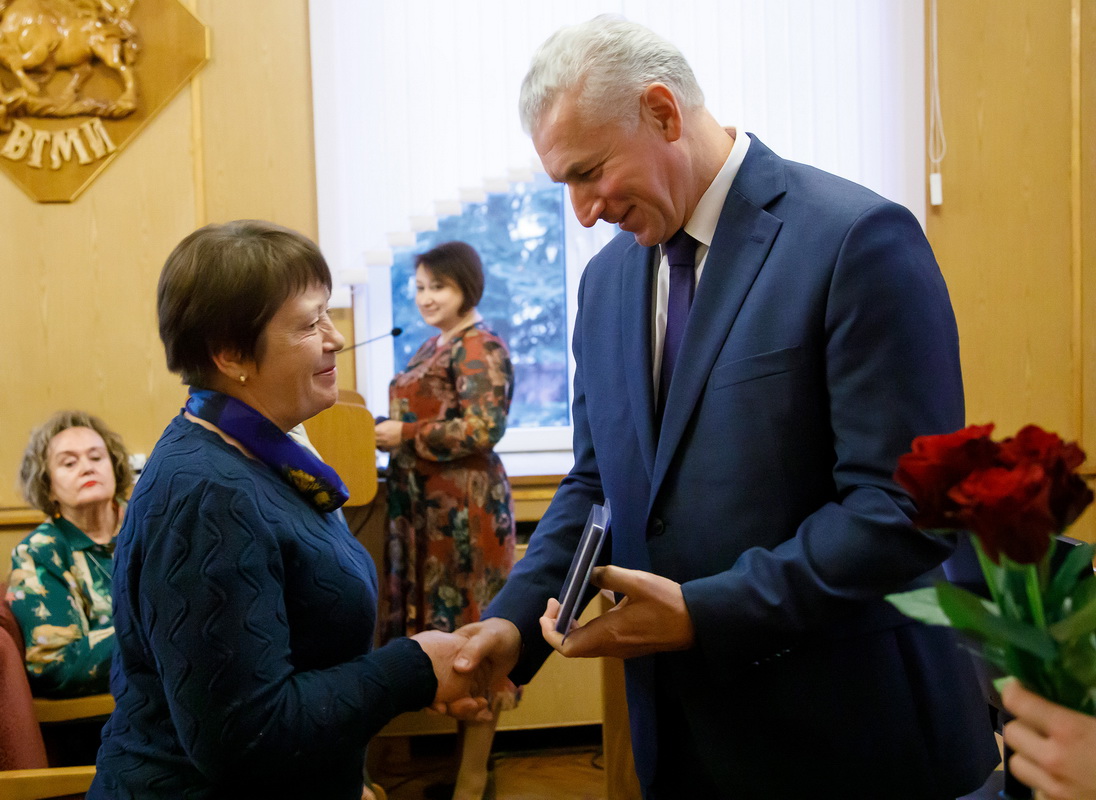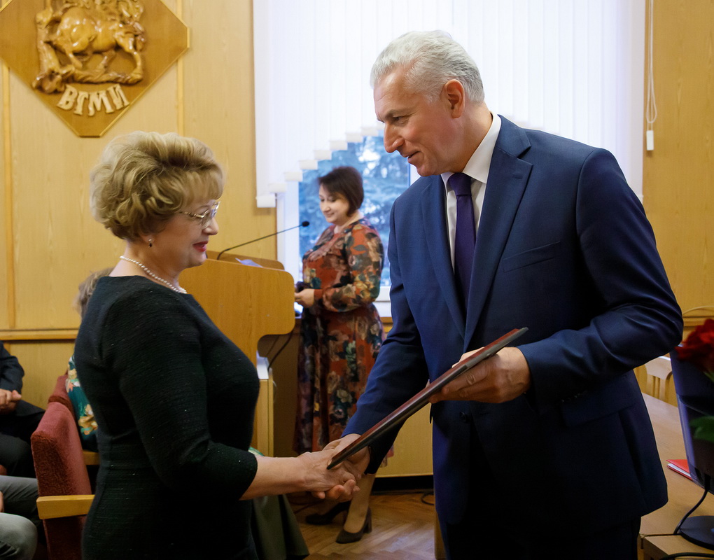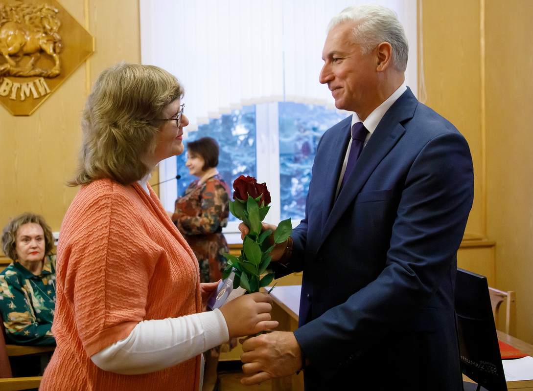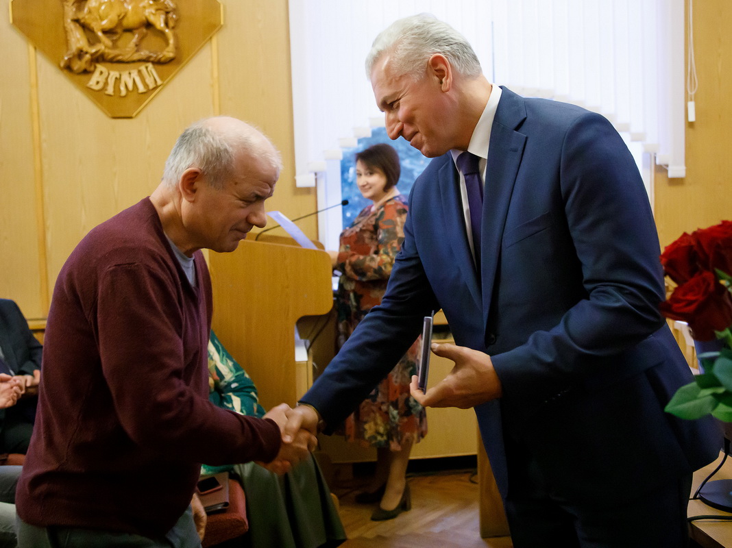 Торжественной частью Совета стало награждение сотрудников университета: диплома кандидата наук удостоена старший преподаватель кафедры анатомии человека Петько И.А., грамотой Министерства образования награждена начальник учебно-методического отдела Гайдукова А.В., Почётной грамотой ВГМУ – Крук Ж.В. Кроме этого, ряду сотрудникам был вручён нагрудный знак «Ветеран труда ВГМУ».