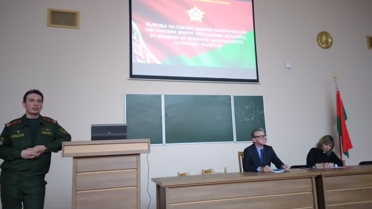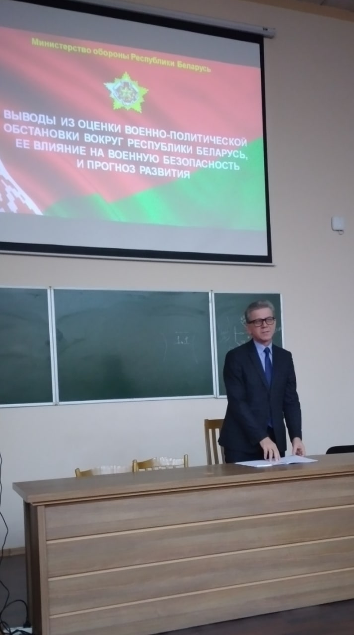 Спикер площадки - начальник учебной части, заместитель начальника военной кафедры, к.м.н., полковник медицинской службы И.А.Лятос – представил участникам диалоговой площадки презентацию «Выводы из оценки военно-политической обстановки вокруг Республики Беларусь, её влияние на военную безопасность и прогноз развития».