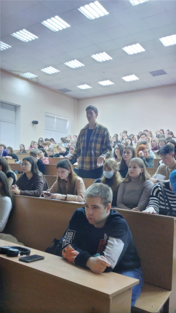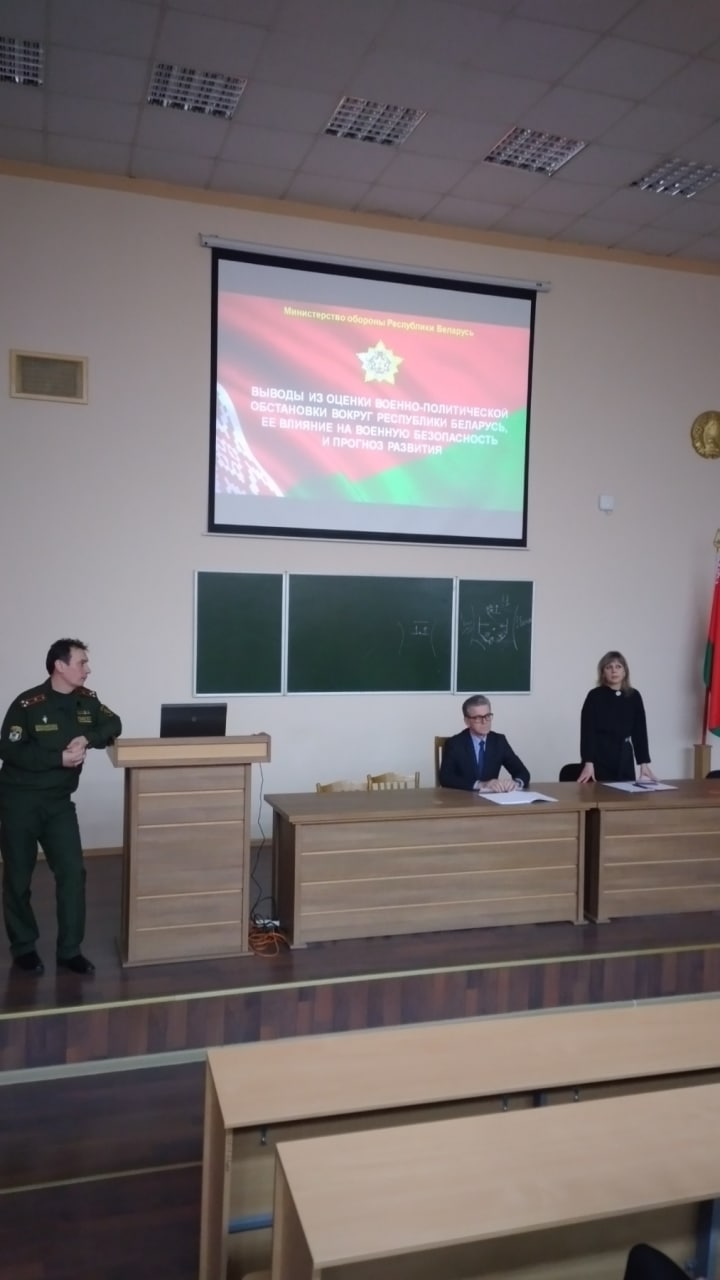 10 ноября в ВГМУ состоялась диалоговая площадка по актуальным вопросам военно-политической обстановки в Республике Беларусь, на которой присутствовали проректор по воспитательной и идеологической работе Н.Г.Болтрушевич, заведующий кафедрой социально-гуманитарных наук С.П.Кулик, сотрудники отдела по воспитательной работе с молодёжью и студенты 2 курса лечебного факультета.
