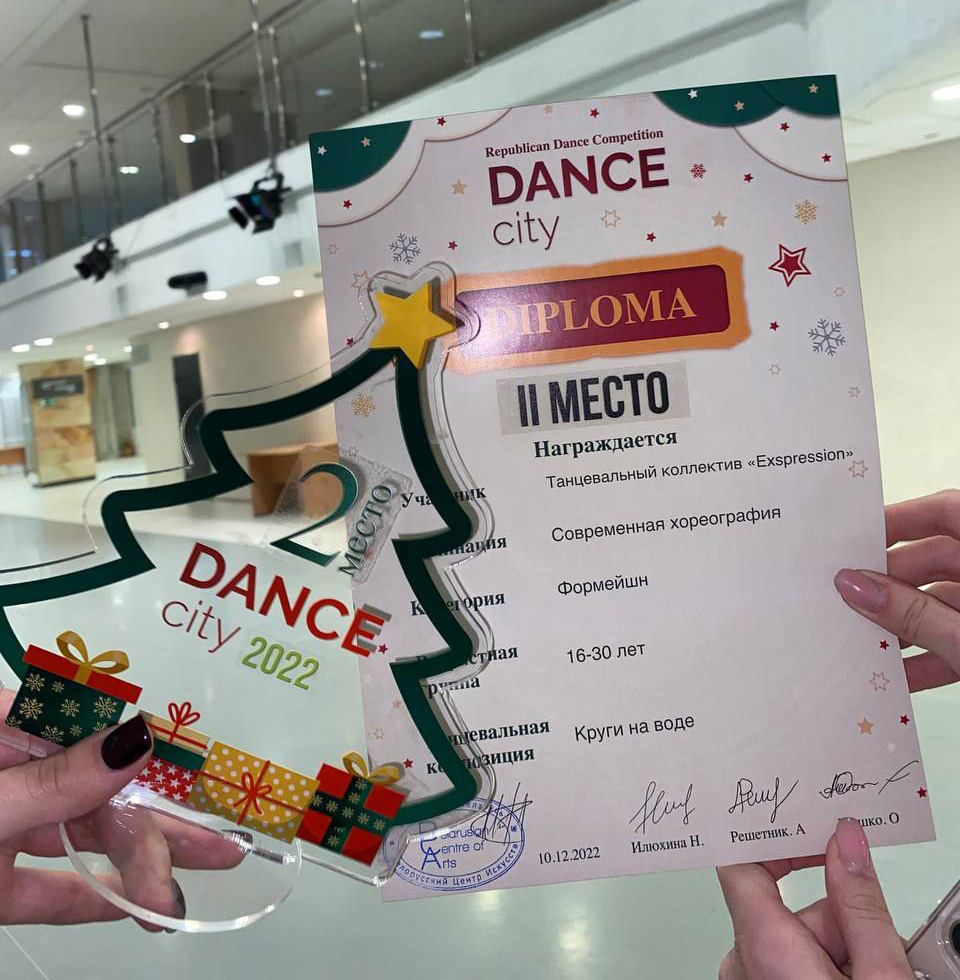 10 декабря в г.Борисове прошёл Республиканский конкурс хореографического искусства "Dance city", в котором приняли участие более 60 коллективов со всей страны. Коллектив современной хореографии ВГМУ "Expression", для которого это был ПЕРВЫЙ большой конкурс, занял II место! Поздравляем коллектив "Expression" и его руководителя Яну Приходовскую, студентку 5 курса стоматологического факультета, с прекрасным дебютом!