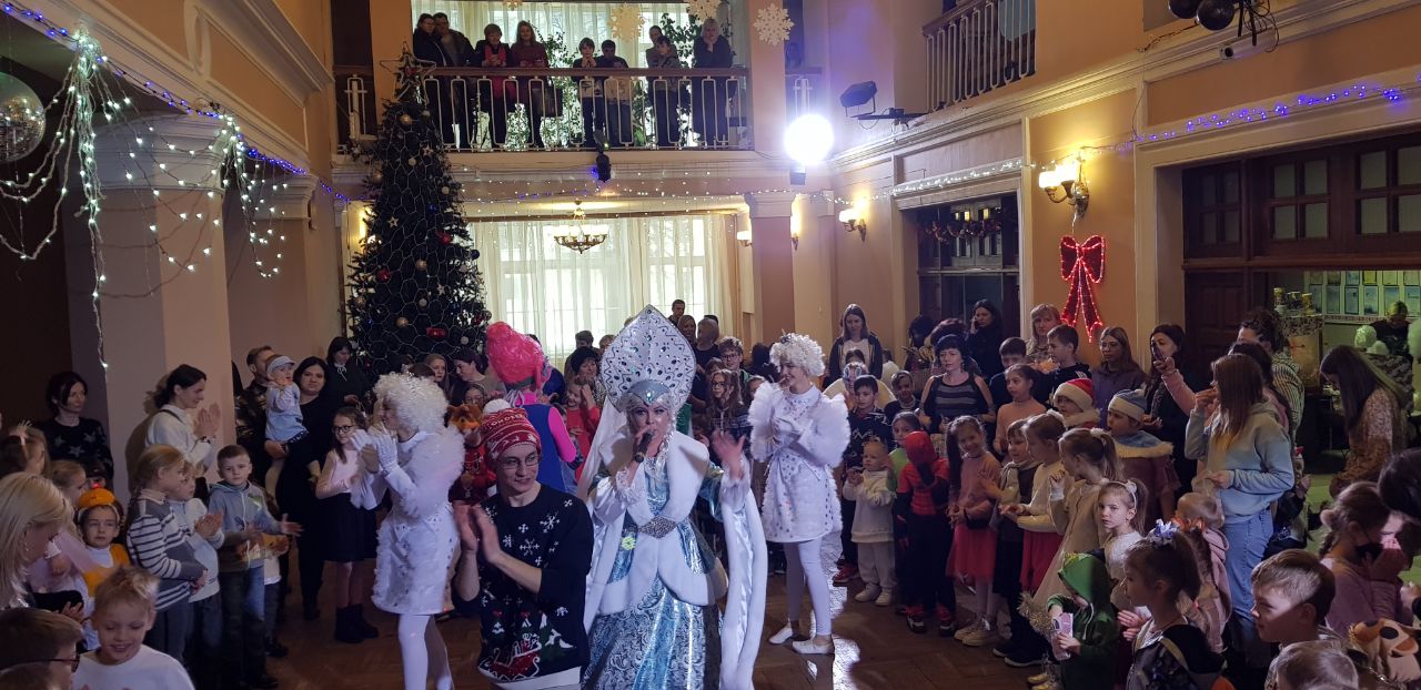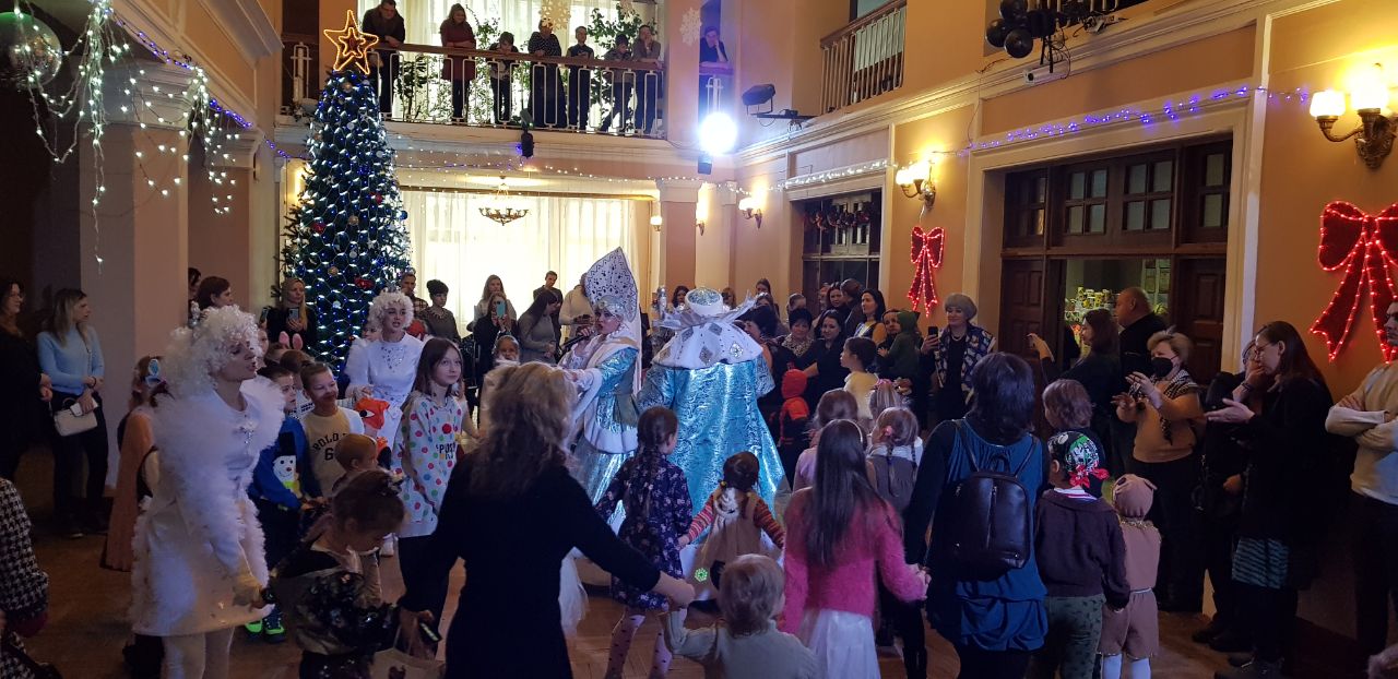 Для детей была организована праздничная постановка, а также представление, которое возглавляли Дед Мороз и Снегурочка. Мероприятие состояло из различных активных конкурсов и игр, дети отгадывали загадки, читали стихи, танцевали и водили хороводы – всё это позволило проникнуться сказочной атмосферой новогоднего торжества.