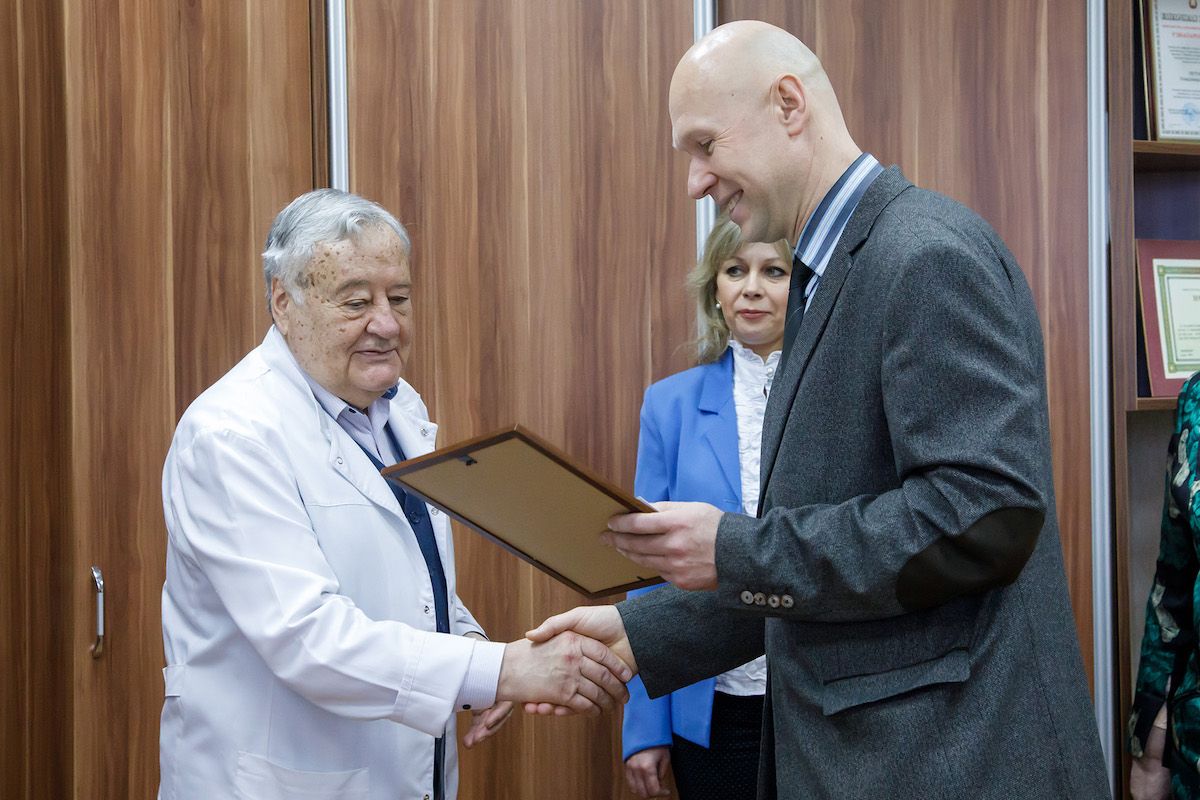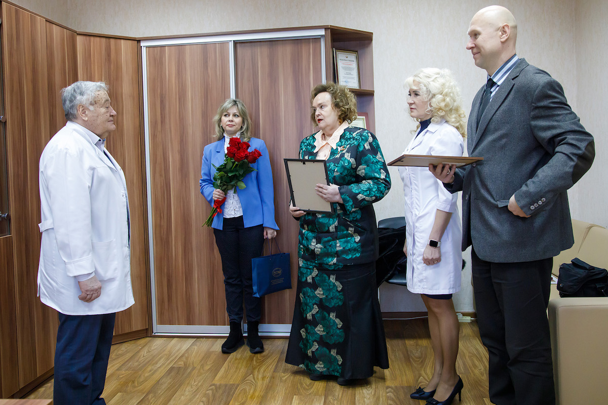 Ректорат, председатель профсоюзной организации сотрудников ВГМУ поздравили Владимира Ивановича с днём рождения на рабочем месте – на кафедре госпитальной хирургии с курсом ФПК и ПК.