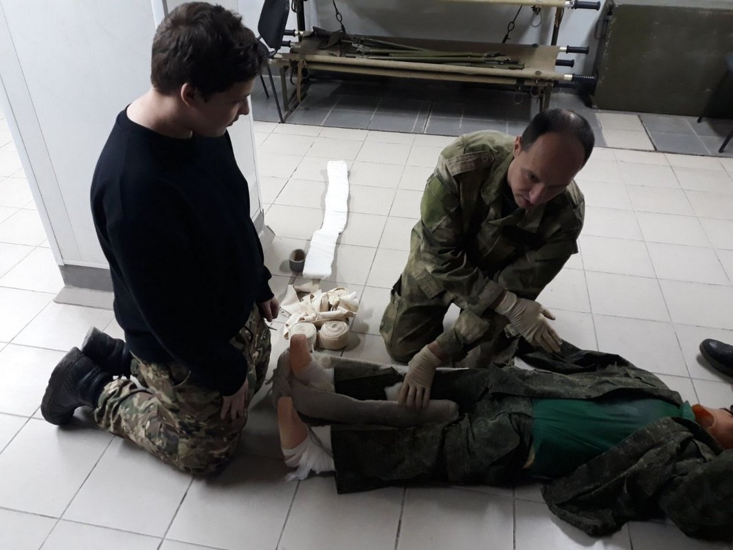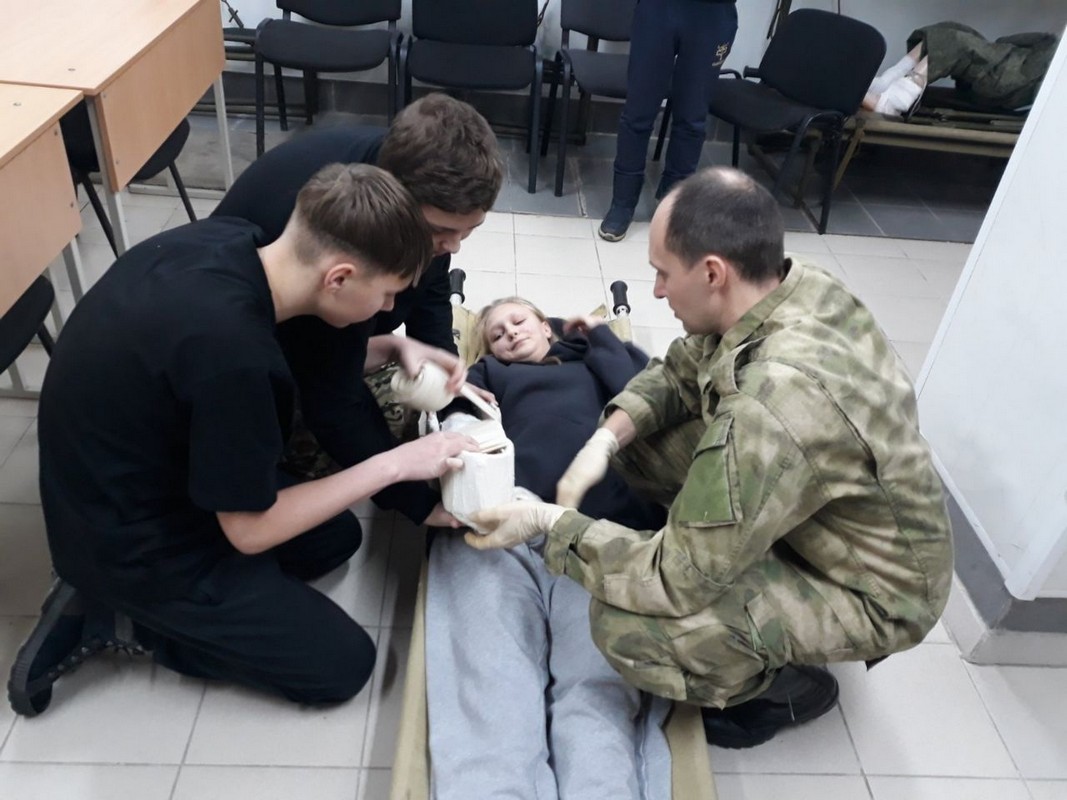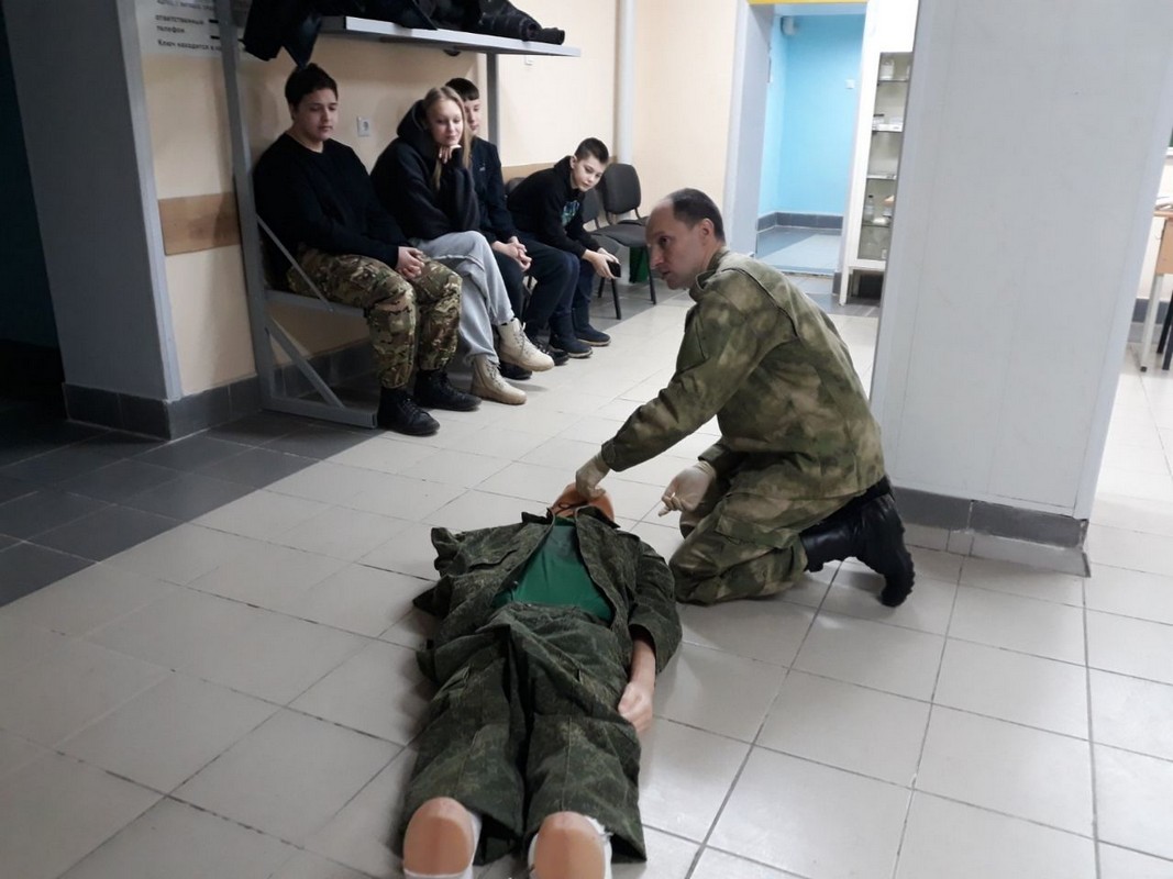 На каникулах 3 января, со школьниками ГУО «Средняя школа №4» старший преподаватель военной кафедры А.М.Цыганков провел занятие по оказанию первой медицинской помощи.