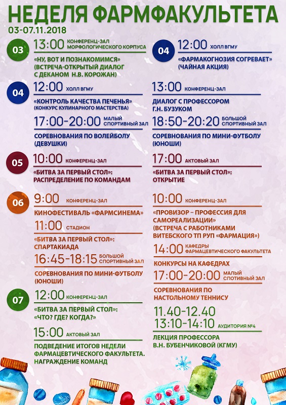 С 3 по 7 декабря 2018 года впервые в ВГМУ пройдет "Неделя фармацевтического факультета".