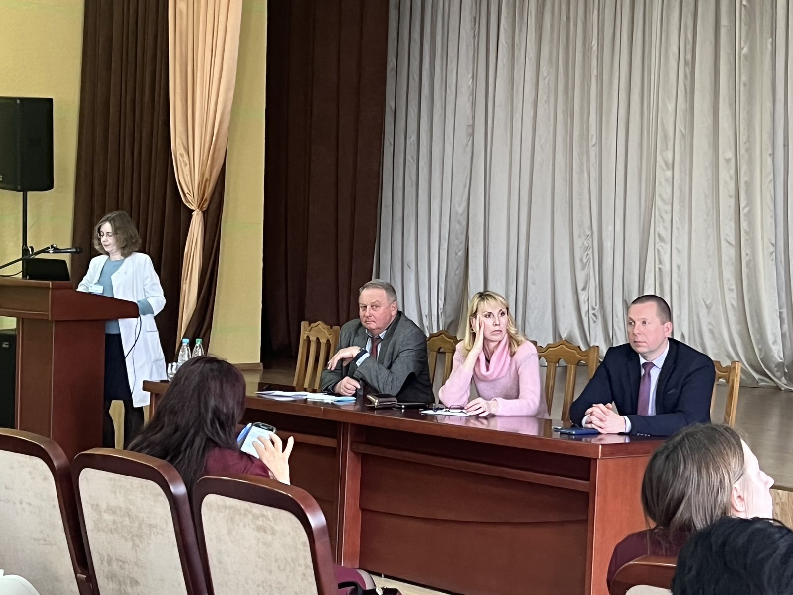 С докладами выступили профессор кафедры педиатрии ПК и ПК В.А. Матвеев «Антибиотикограмма и принципы ее применения в практическом здравоохранении», доцент кафедры клинической микробиологии В.К. Окулич «Основные механизмы резистентности бактерий к антибиотикам и пути ее преодоления», старший преподаватель кафедры педиатрии №2 М.А. Васильева «Возможности практического использования программы WHONET при анализе антибиотикорезистентности клинически значимых бактериальных патогенов на уровне отдельного стационара», старший преподаватель кафедры общей и клинической фармакологии с курсом ФПК и ПК Н.Ю. Лескова.